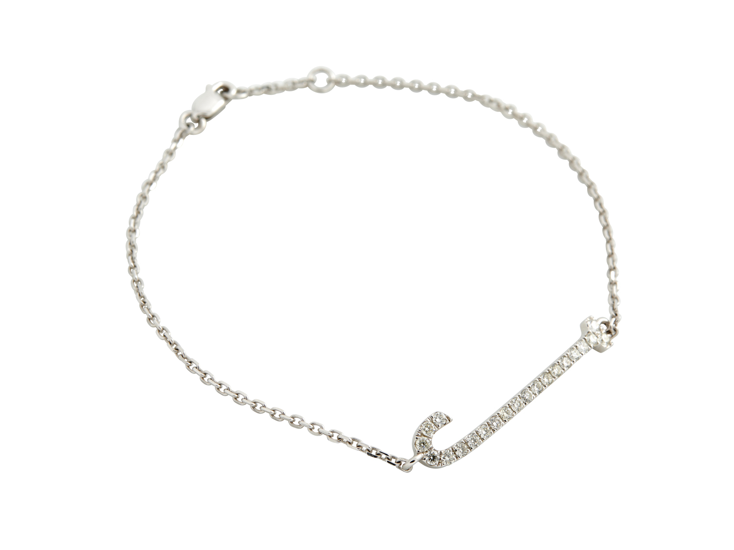 The fine chain centring a diamond set 'J' motif, the diamonds together weighing approximately 0.27 carats, completed by a parrot clasp, length approximately 150mm-160mm adjustable.