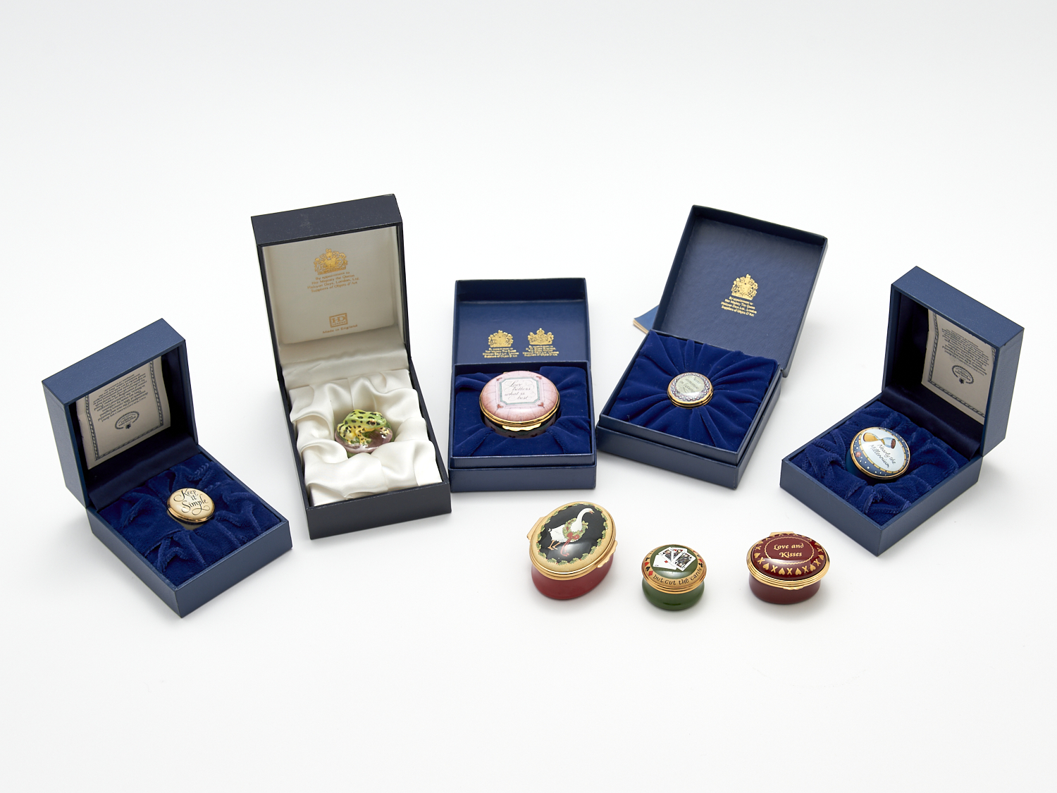 A COLLECTION OF EIGHT HALCYON DAYS ENAMEL LIDDED BOXES (FIVE WITH ORIGINAL BOXES) W.10.5CM (LARGEST BOX), LEONARD JOEL LOCAL DELIVERY: SMALL
