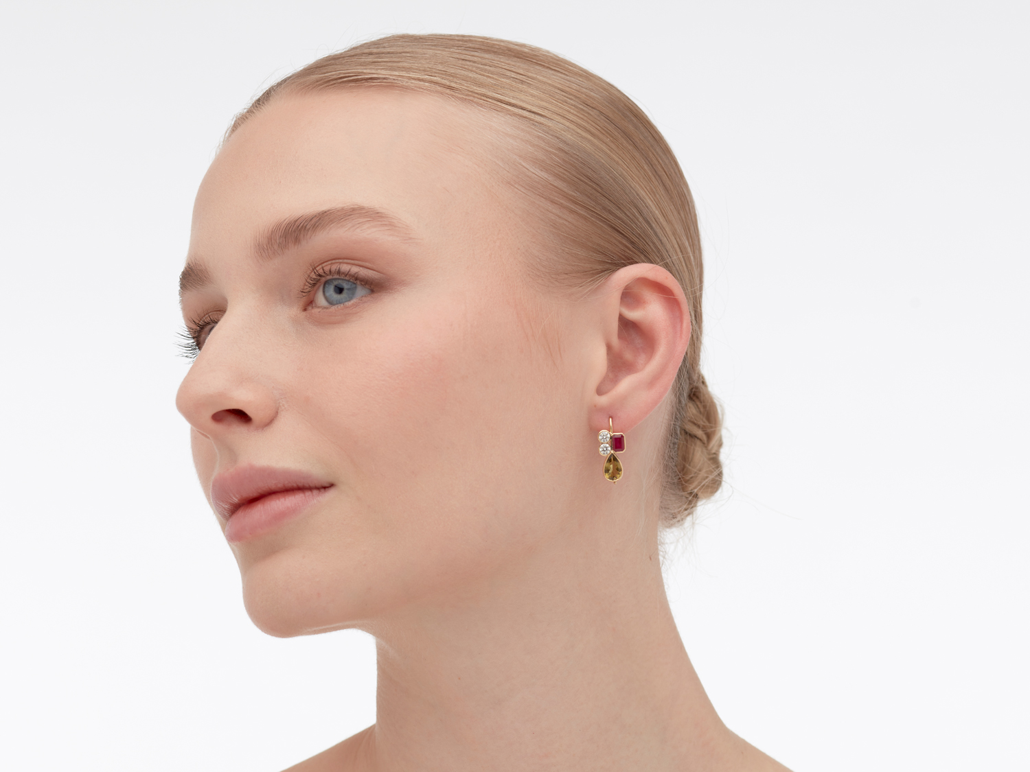 PAIR OF 18CT GOLD, DIAMOND AND GEM-SET EARRINGS