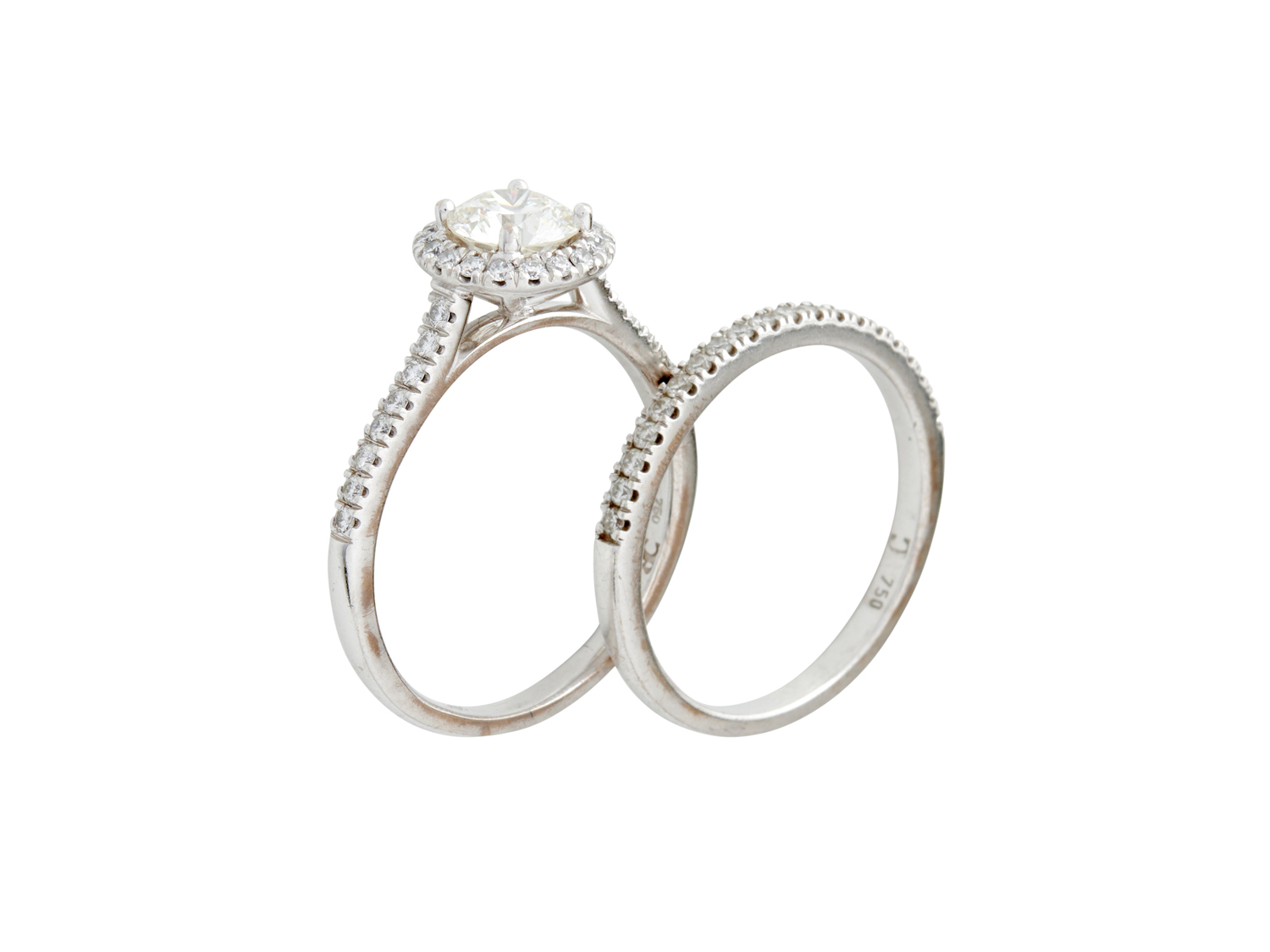 Comprising a diamond cluster ring centring a claw-set brilliant-cut diamond weighing 1.00 carat, within a surround of brilliant-cut diamonds and diamond set shoulders together weighing approximately 0.50 carats; together with a fitted half hoop band set with brilliant-cut diamonds together weighing approximately 0.20 carats, signed CR for Charles Rose, size R.