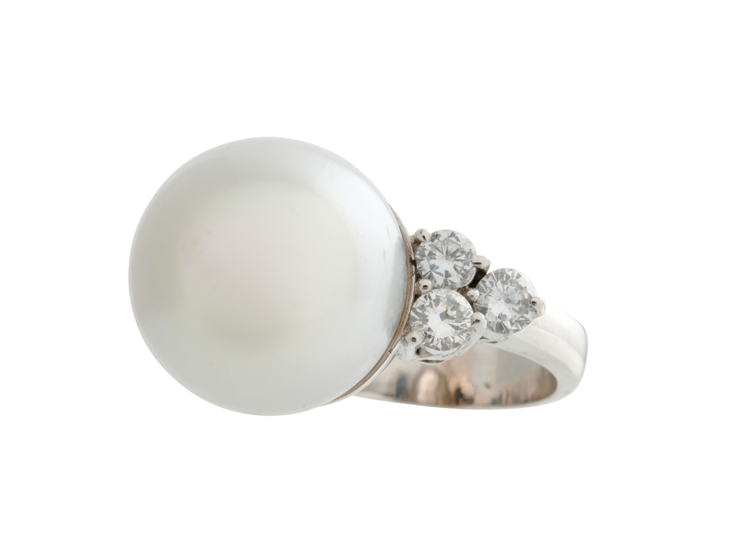 18CT WHITE GOLD, SOUTH SEA PEARL AND DIAMOND RING
