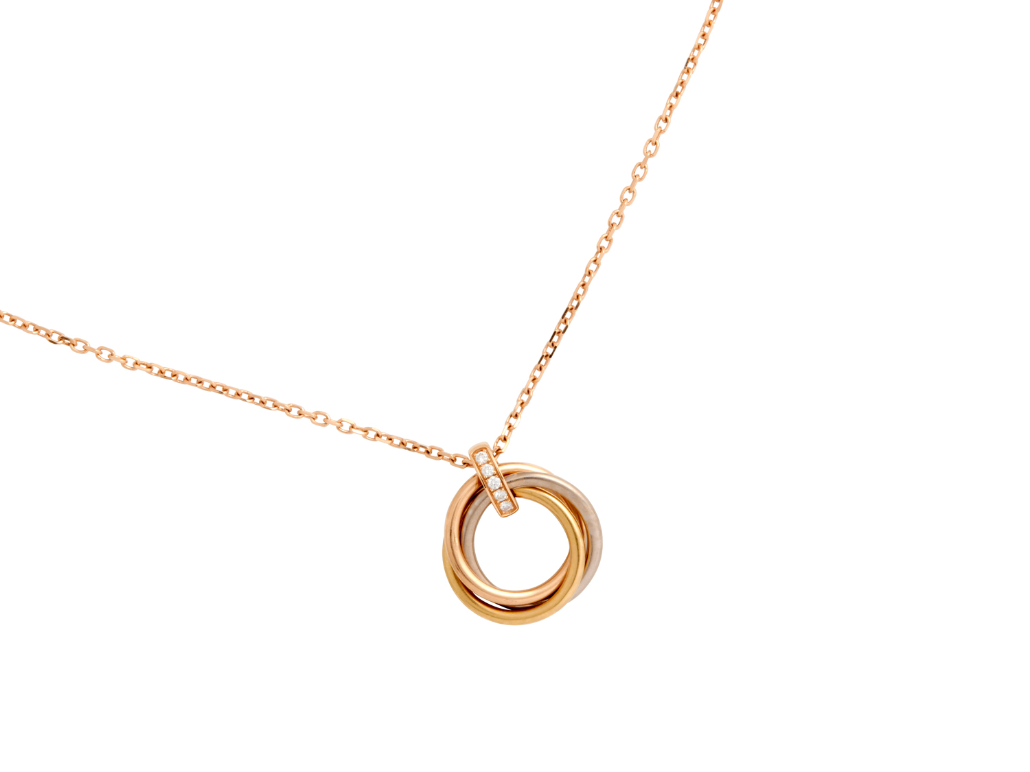 CARTIER, 18CT TRI-COLOUR GOLD AND DIAMOND 'TRINITY' PENDANT NECKLACE