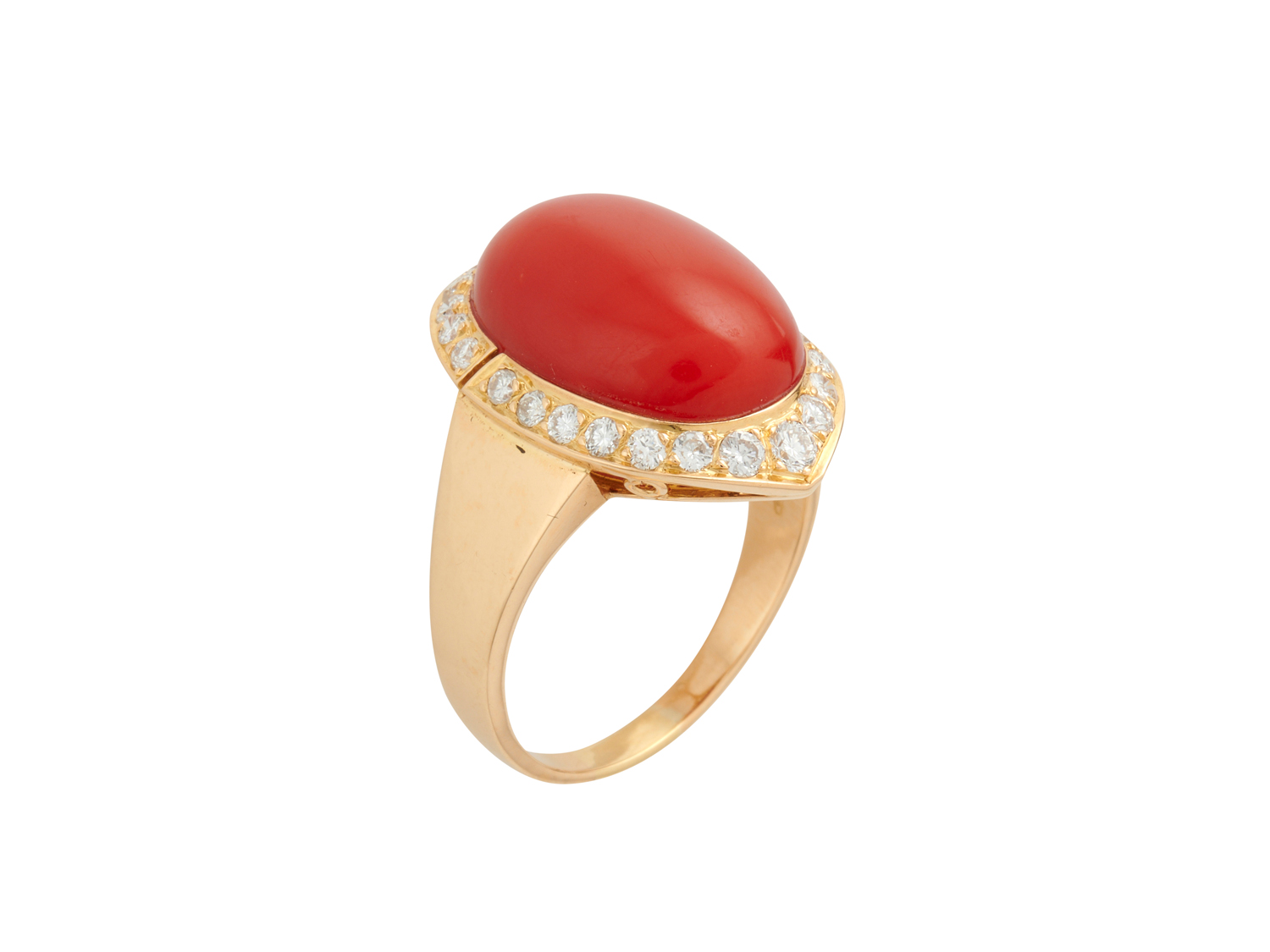 CARTIER, 18CT GOLD, CORAL AND DIAMOND RING, CIRCA 1970