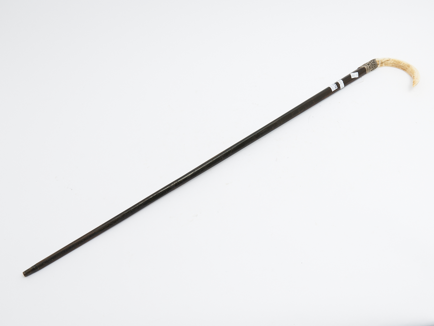 A WALKING STICK WITH EMBOSSED SILVER MOUNTING AND TUSK HANDLE, COLONIAL, 19TH CENTURY L.95CM, LEONARD JOEL DELIVERY SIZE: SMALL