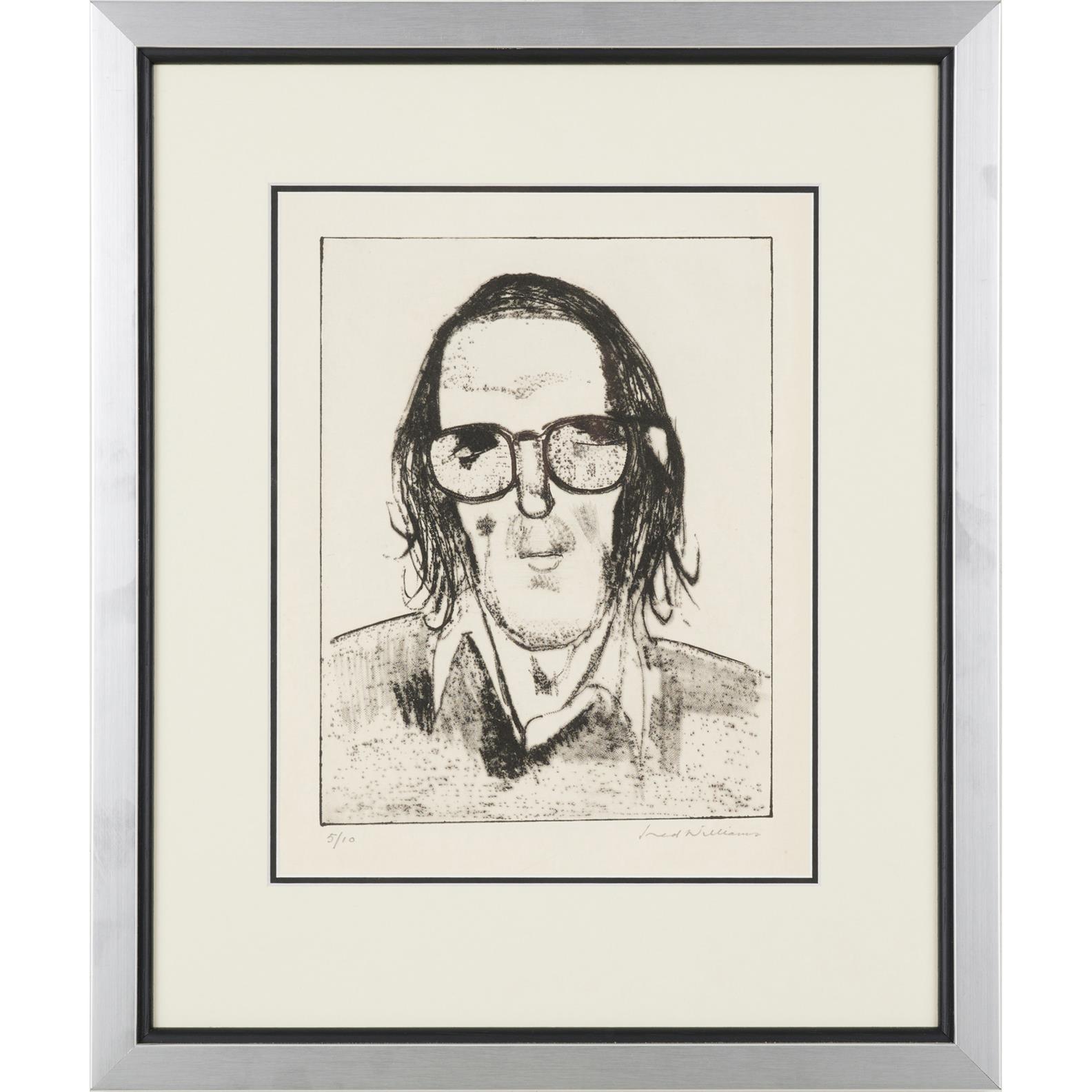 "Fred Williams and his wife Lyn played hosts to David Aspden and his family while they were in Melbourne for an exhibition of Aspden's work. Fred Williams painted Aspden's portrait in a single morning, and made no changes later. Patrick McCaughey writes that like Williams' other portraits, it was more a gesture of friendship than a work destined for exhibition. Yet, he asserts, the ‘direct and unselfconscious ease of David Aspden makes it one of the small masterpieces of Williams' informal portraiture'."