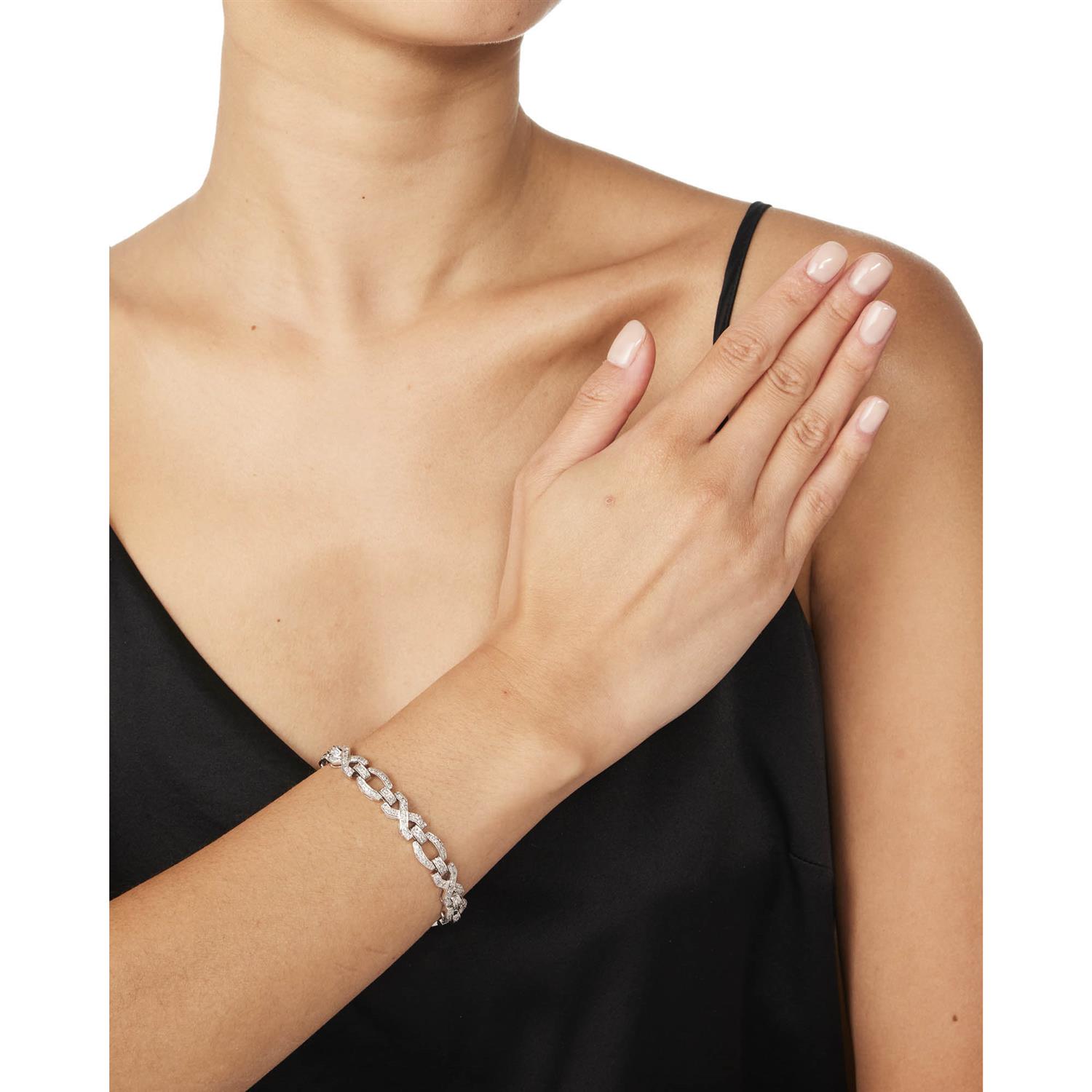 Designed as a line of X-shaped links alternating with elliptical links between half round connectors pavé-set with brilliant-cut diamonds, the diamonds together weighing approximately 2.01 carats, mounted in 14ct white gold, length 185mm.