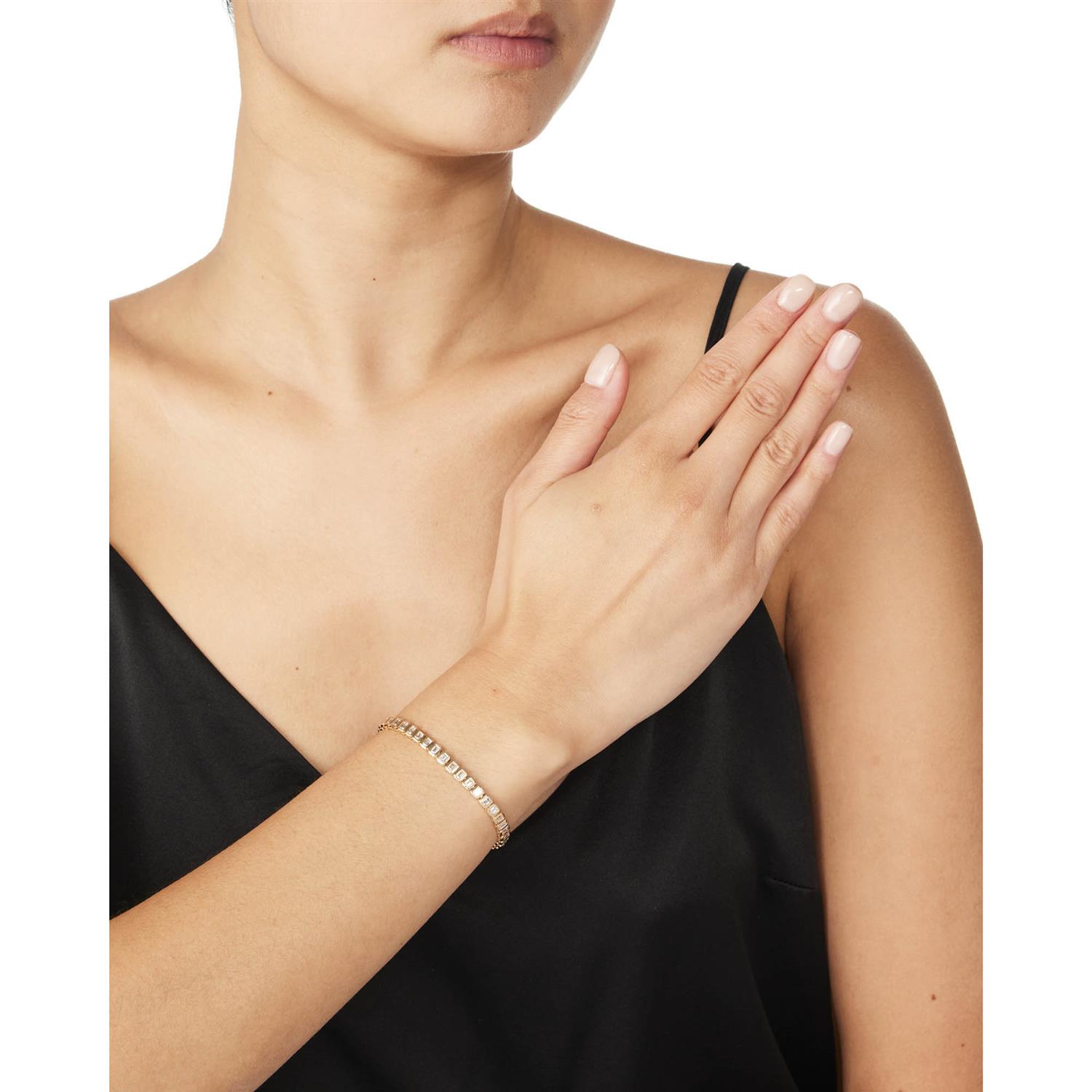 Composed of a line of 45 collet-set emerald-cut diamonds completed by a concealed box clasp, the diamonds together weighing approximately 4.05 carats, mounted in 18ct gold, length 180mm.