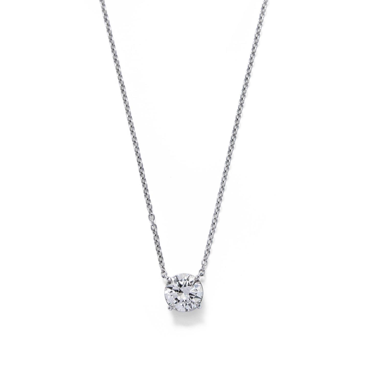 The round brilliant-cut diamond weighing 1.61 carats, is claw-set, supported by a fine trace link chain, mounted in platinum, inner circumference 420mm, adjustable to 390mm.