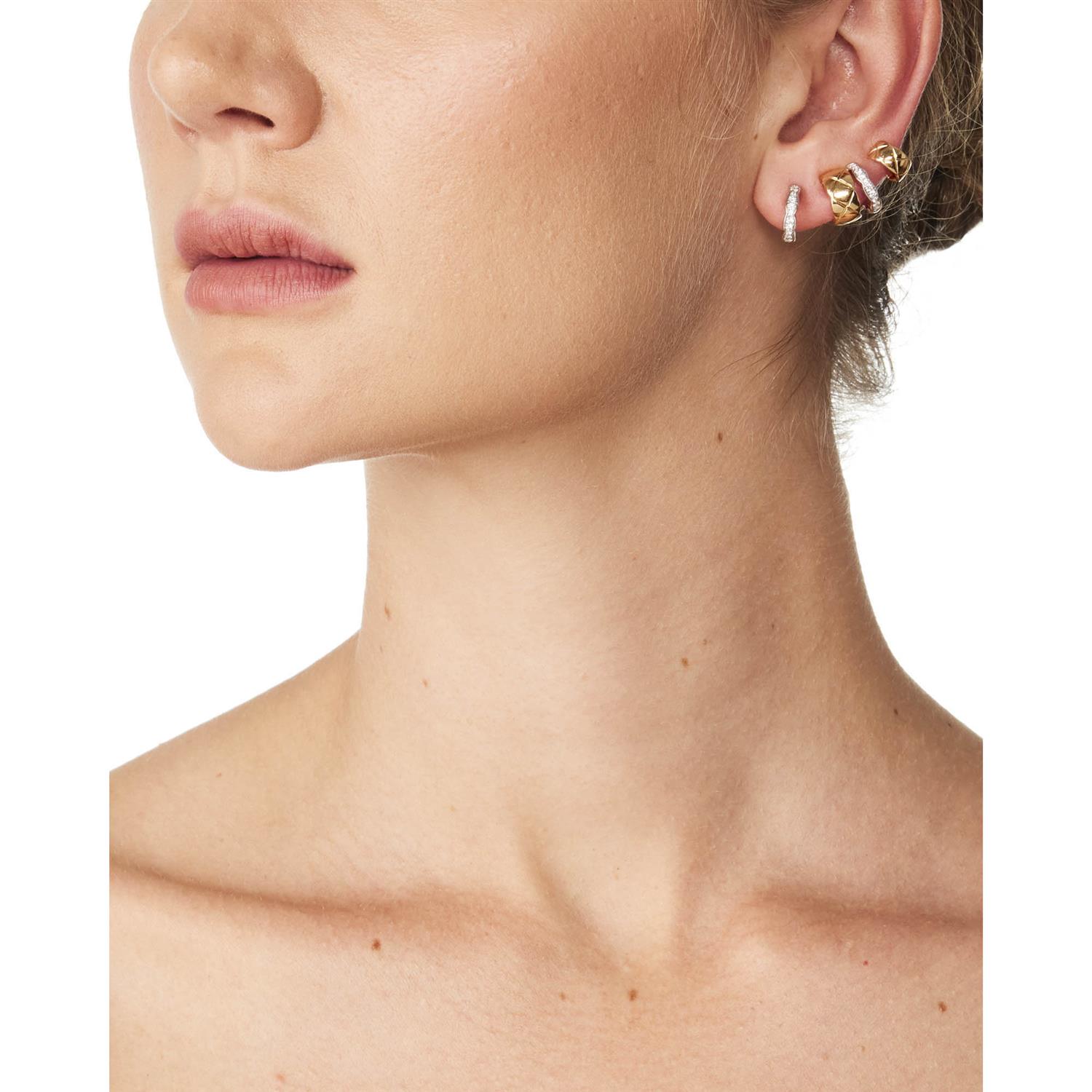 Each hoop of quilted motif, partially decorated with brilliant-cut diamonds, the diamonds together weighing approximately 0.24 carats, mounted in 18ct two-tone gold, post and clip fittings, posts removable, makers marks, signed Chanel