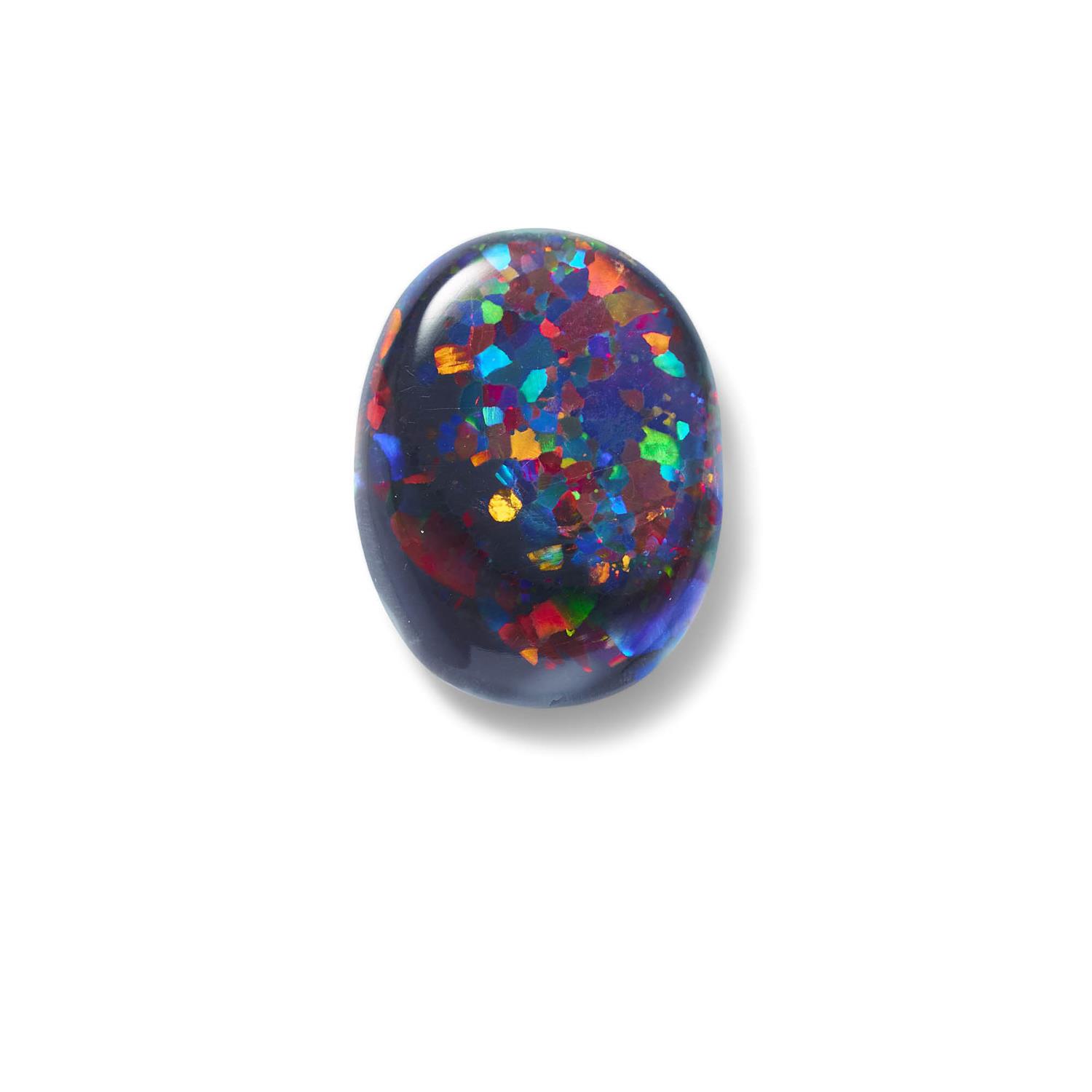 The Australian Lightening Ridge oval double sided cabochon opal measuring approximately 23.47mm x 18.20mm x 5.70mm, weighing 13.93 carats, unmounted.