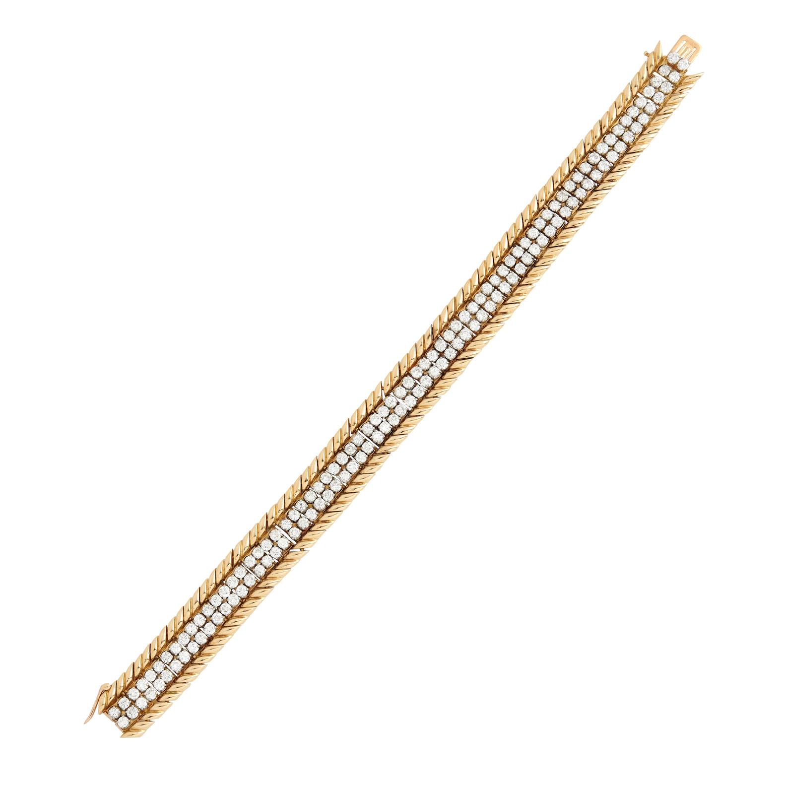 Comprising two rows of brilliant-cut diamonds together weighing approximately 7.00 carats, flanked by articulated cords links, completed by a tongue and groove clasp, stamped 'Made in France' with French marks, length 180mm.