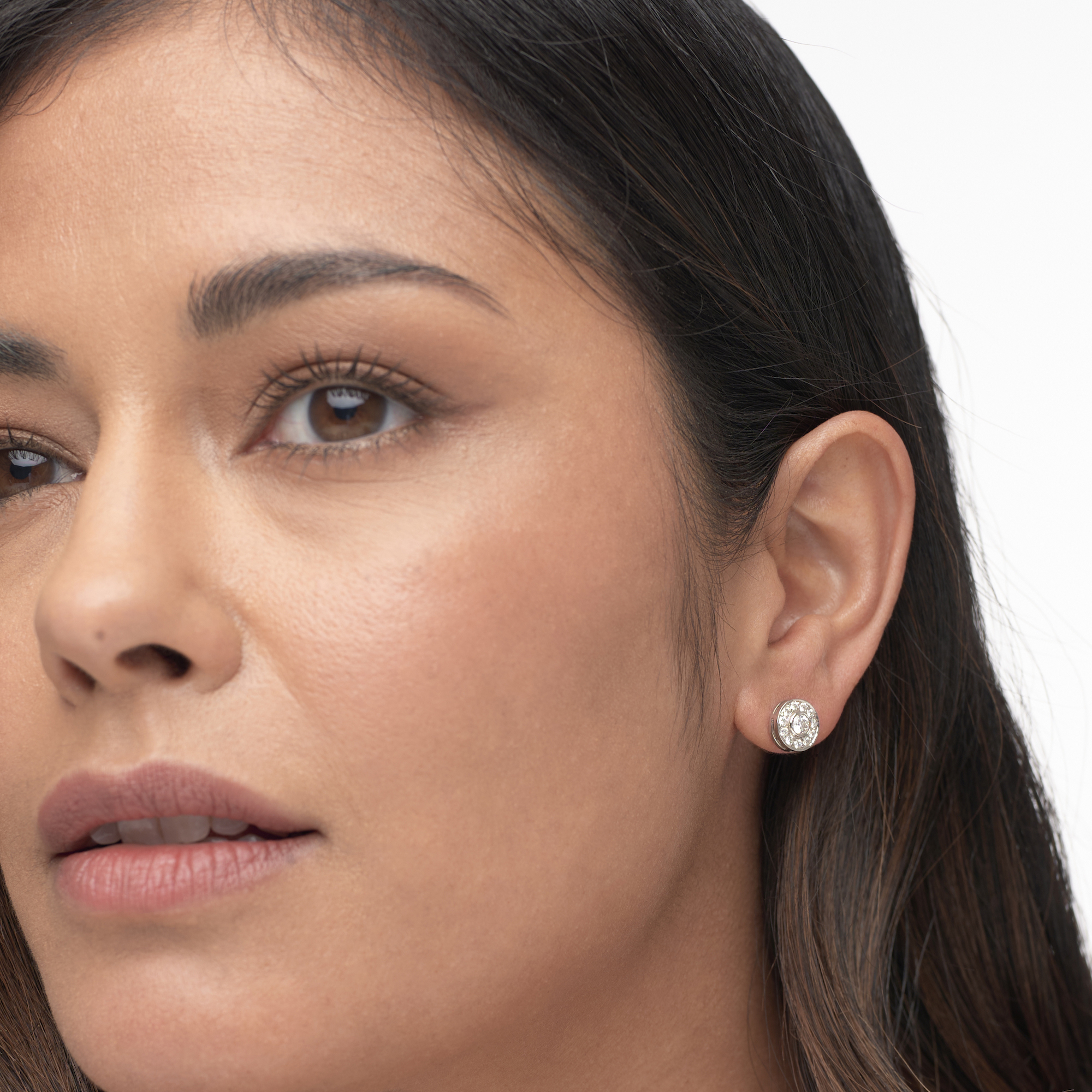 Each earring of cluster design centring a collet-set brilliant-cut diamond within a further surround of eleven diamonds, the diamonds together weighing approximately 0.80 carats, signed Tiffany & Co., to post and la pousette fittings, diameter 8mm.