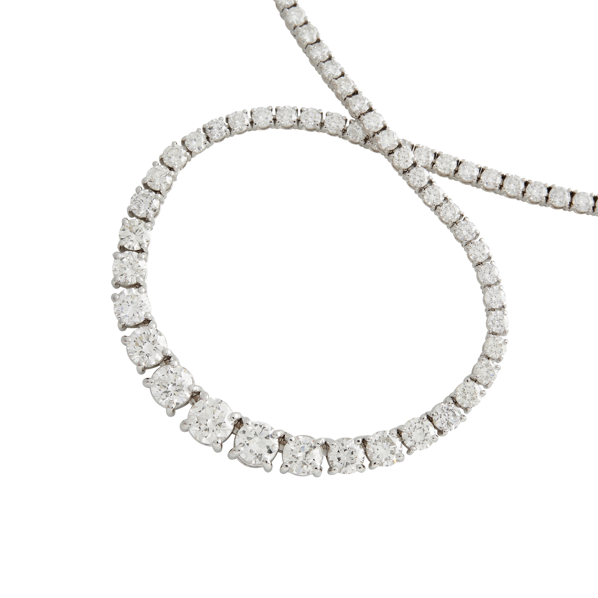 Of riviere design, comprising eighty five graduating claw-set brilliant-cut diamonds together weighing approximately 8.78 carats, completed by a tongue and groove clasp, length 440mm.