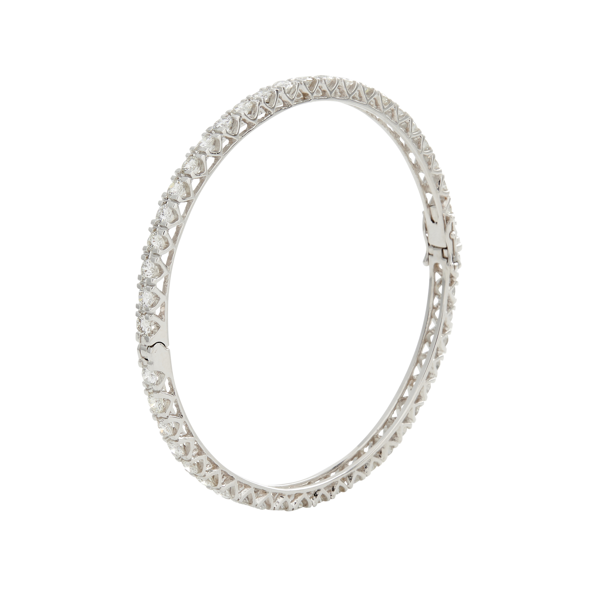 The hinged circular bangle, claw-set with forty-eight brilliant-cut diamonds together weighing approximately 5.18 carats,