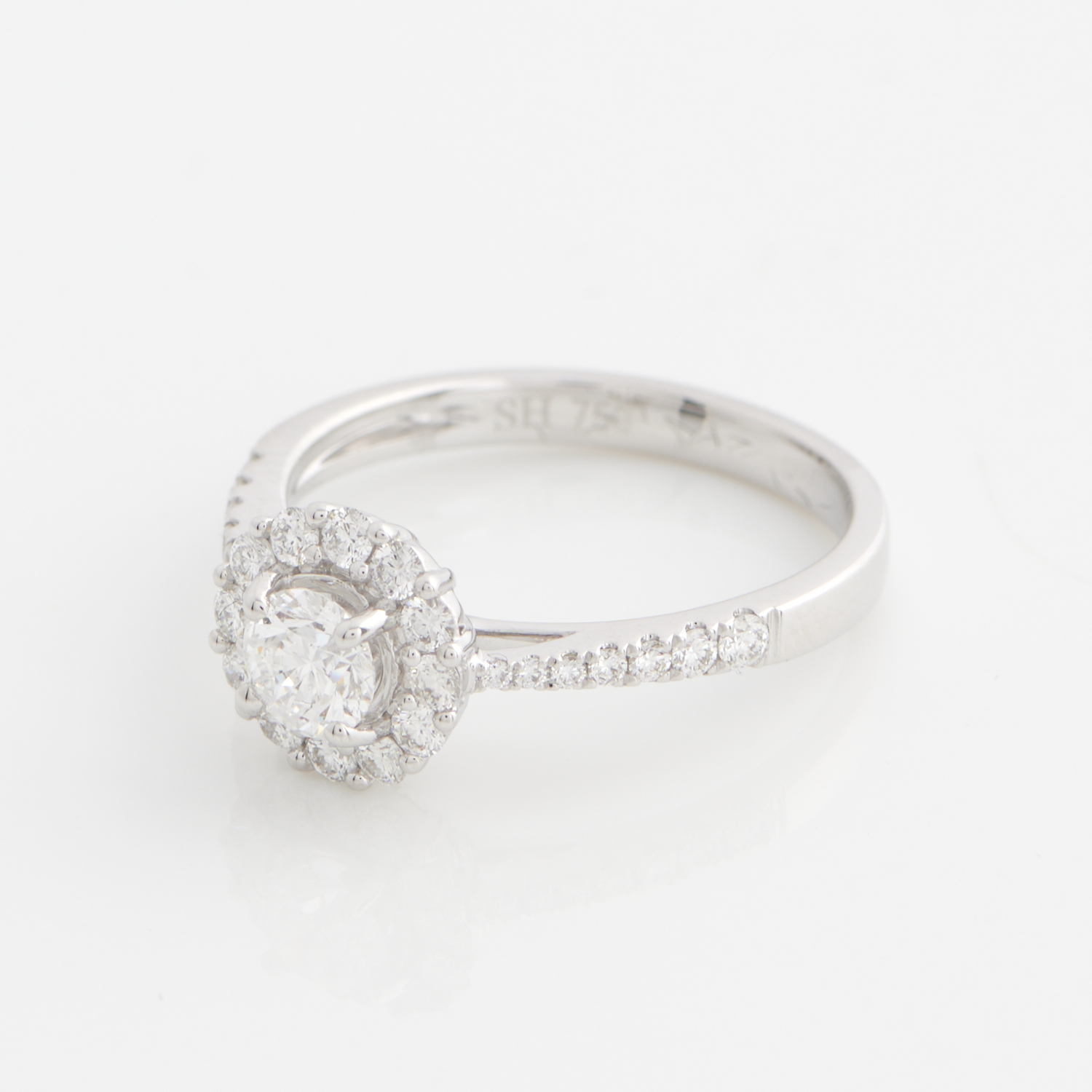 A DIAMOND CLUSTER RING IN 18CT WHITE GOLD, THE DIAMOND OF 0.35CTS (D, SI2), SIZE L, ACCOMPANIED BY GIA CERTIFICATE NUMBER ONLY 2377362358