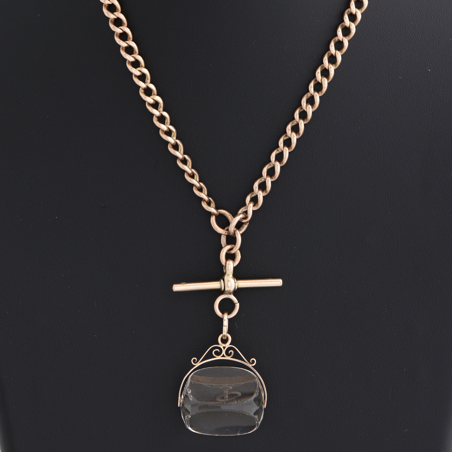 A FOB CHAIN IN 9CT GOLD, SUSPENDING A QUARTZ SWIVEL IN 9CT GOLD, 440MM, 47.6GMS