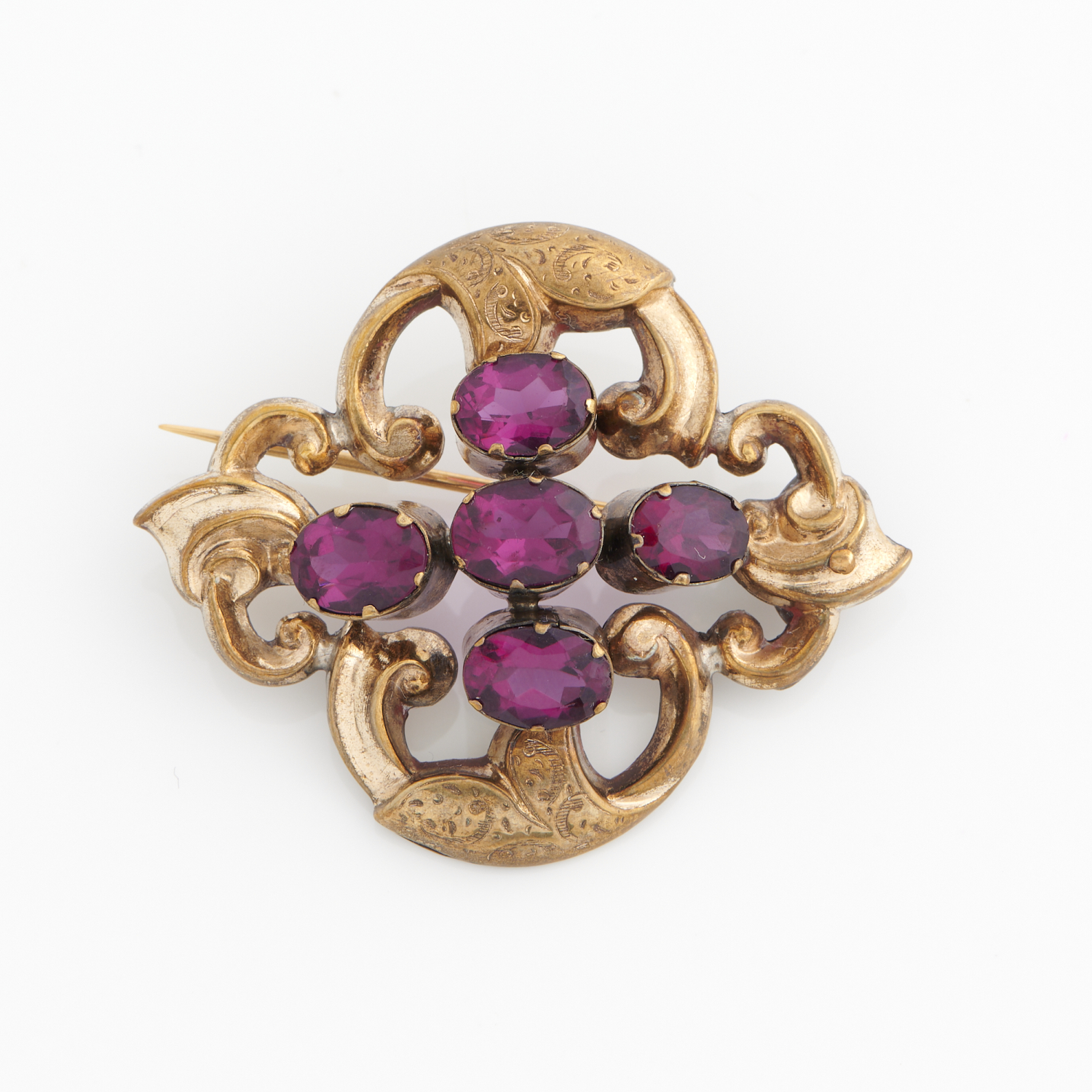 A VICTORIAN PASTE SET BROOCH IN GOLD PLATE, 50 X 43MM