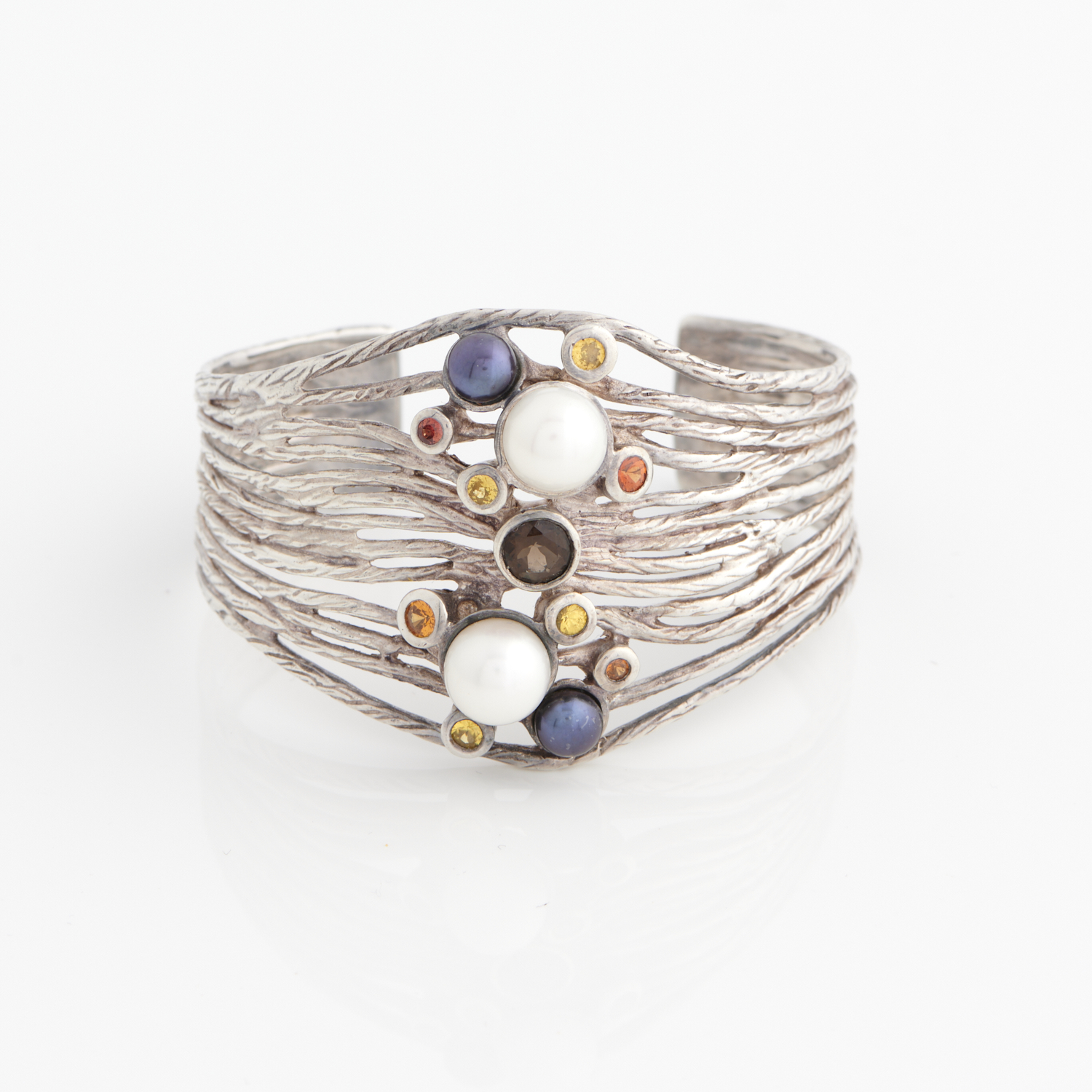 A VINTAGE GEM-SET AND PEARL CUFF IN STERLING SILVER, 55MM