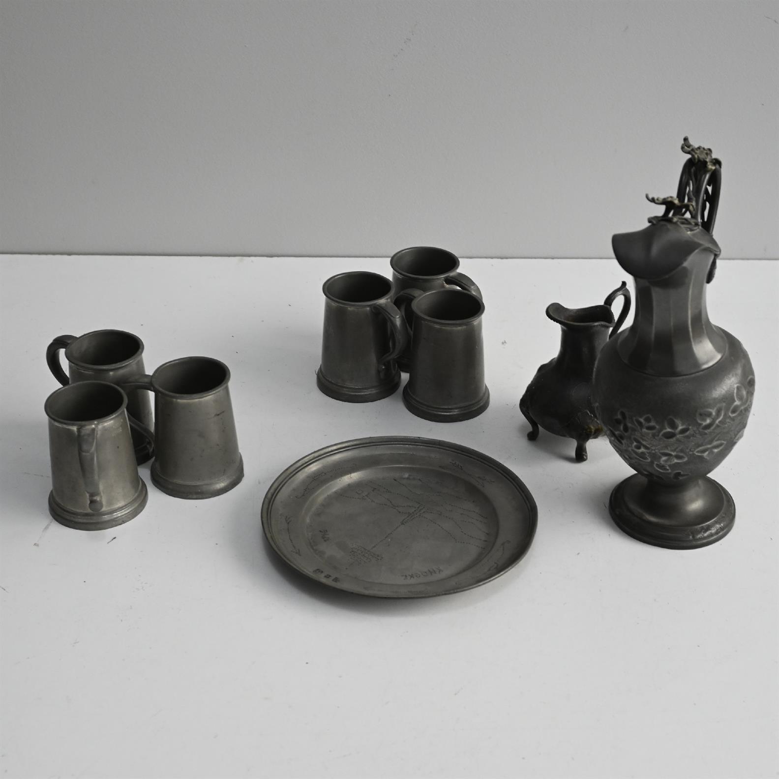 A GROUP OF ASSORTED PEWTER INCLUDING AN 18TH CENTURY PLATE. (23DIA CM) (LEONARD JOEL DELIVERY: MEDIUM) Provenance: Private Collection, Toorak