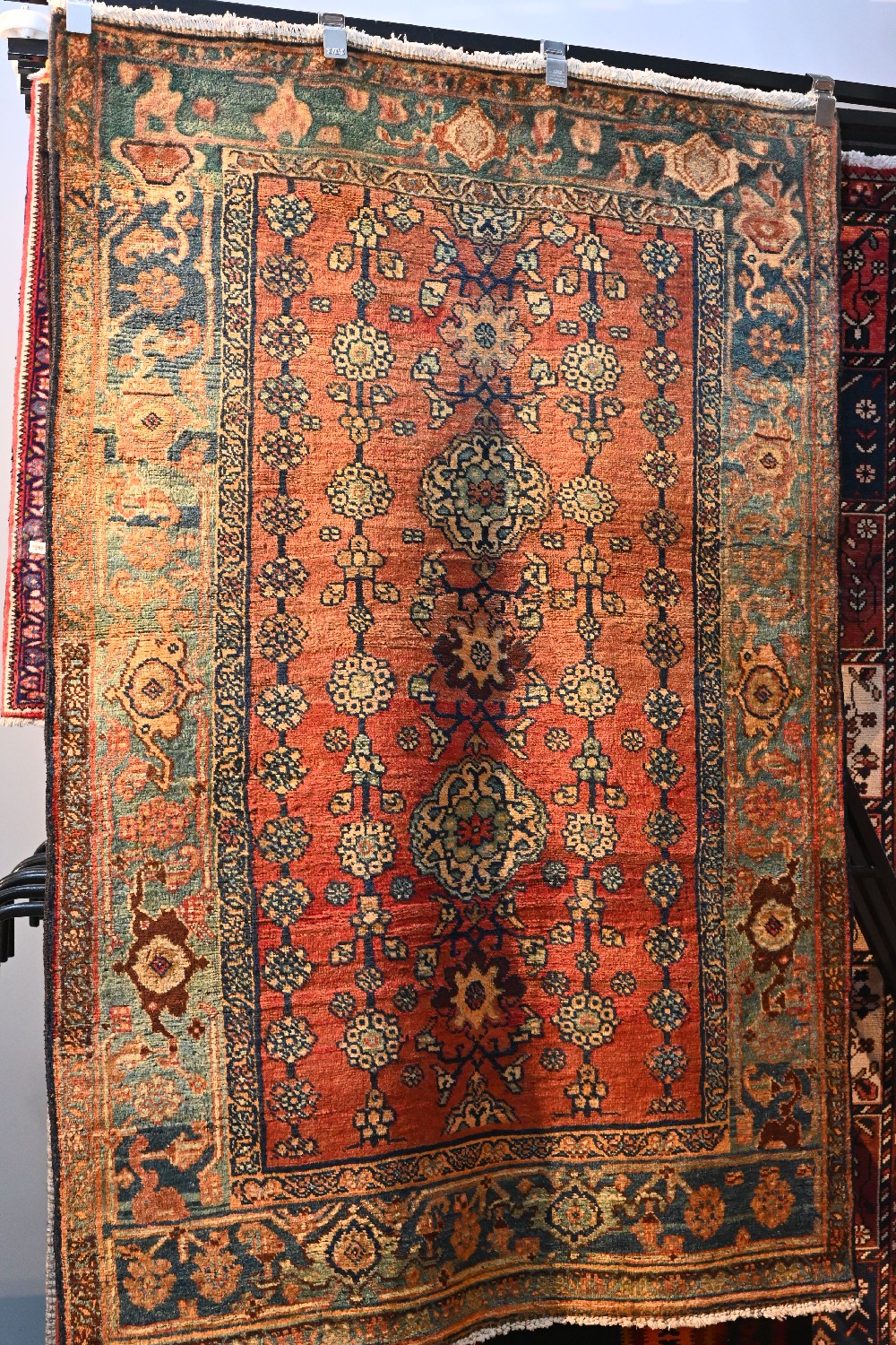 CIRCA 1960'S PERSIAN TRIBAL BIDJAR BIDGANDEH RUG, 100% WOOL PILE, ORGANIC DYES. ALL OVER FLORAL ROSETTE MEDALLION DESIGN WITH SOFT MUTED TONES AND NATURAL ABRASH. SIZE: 181 X 122 CM-ORIGIN: PERSIA – RRP: $1,600 CONDITION: MINOR SEMI-VINTAGE PILE DOCUMENTATION OF AUTHENTICITY INCLUDED.