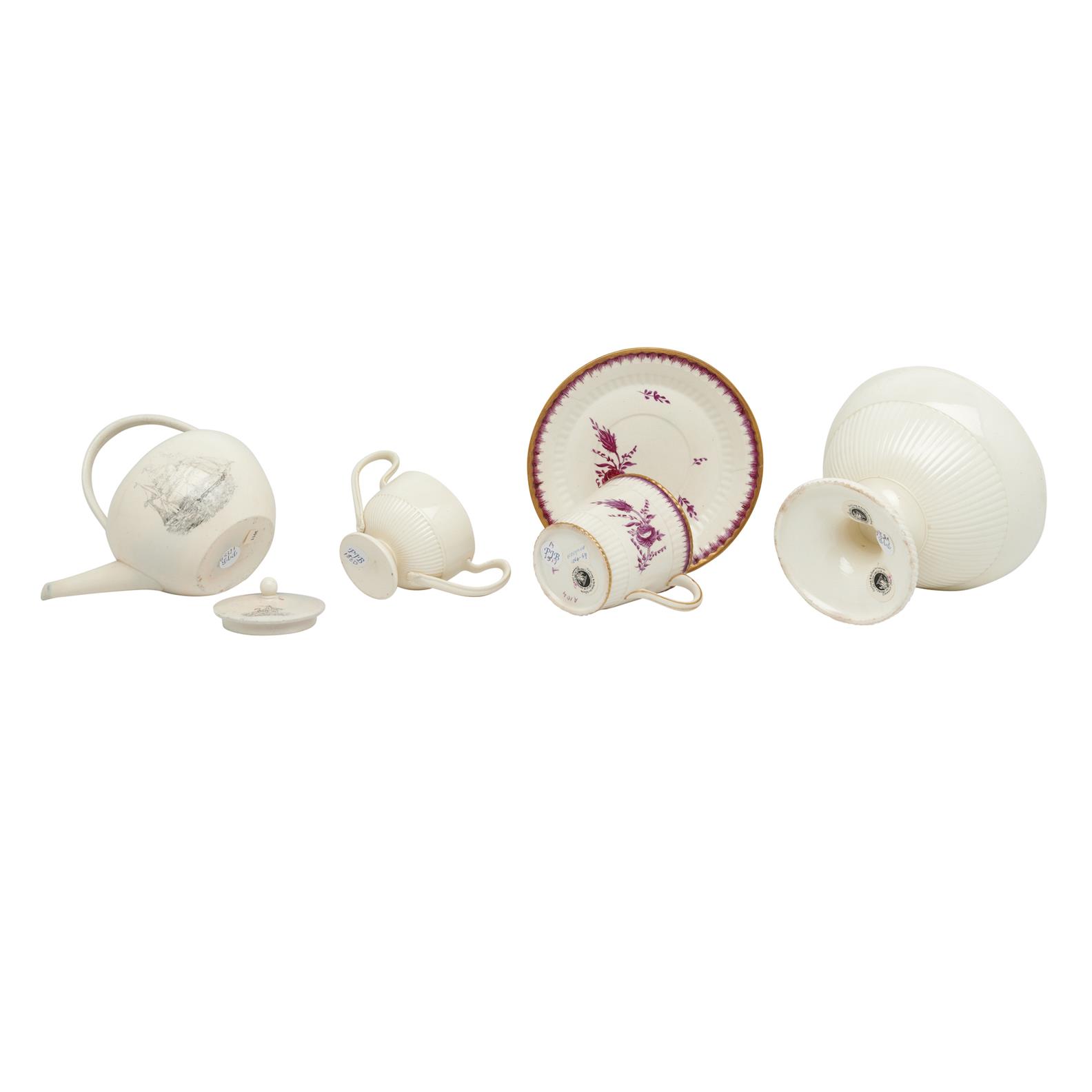 The moulded footed sugar bowl with a ribbed band around the body and a spiralled ribbed band around the edge of the foot, probably by Enoch Wood, circa 1790