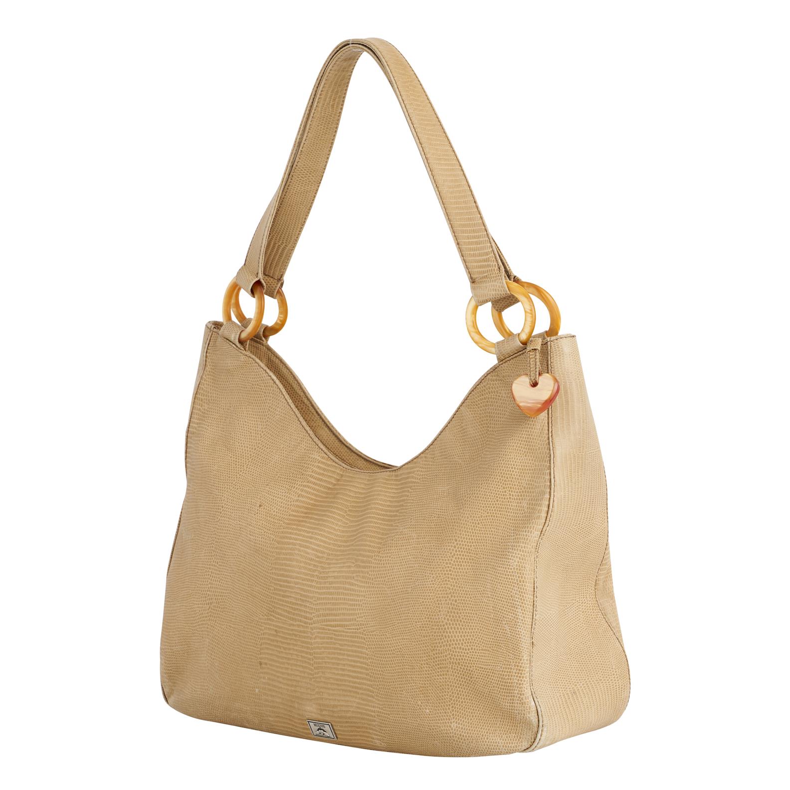 MOSCHINO, A HANDBAG STYLED IN BEIGE LIZARD EMBOSSED LEATHER WITH LUCITE HARDWARE, 36 X 29 X 14CM