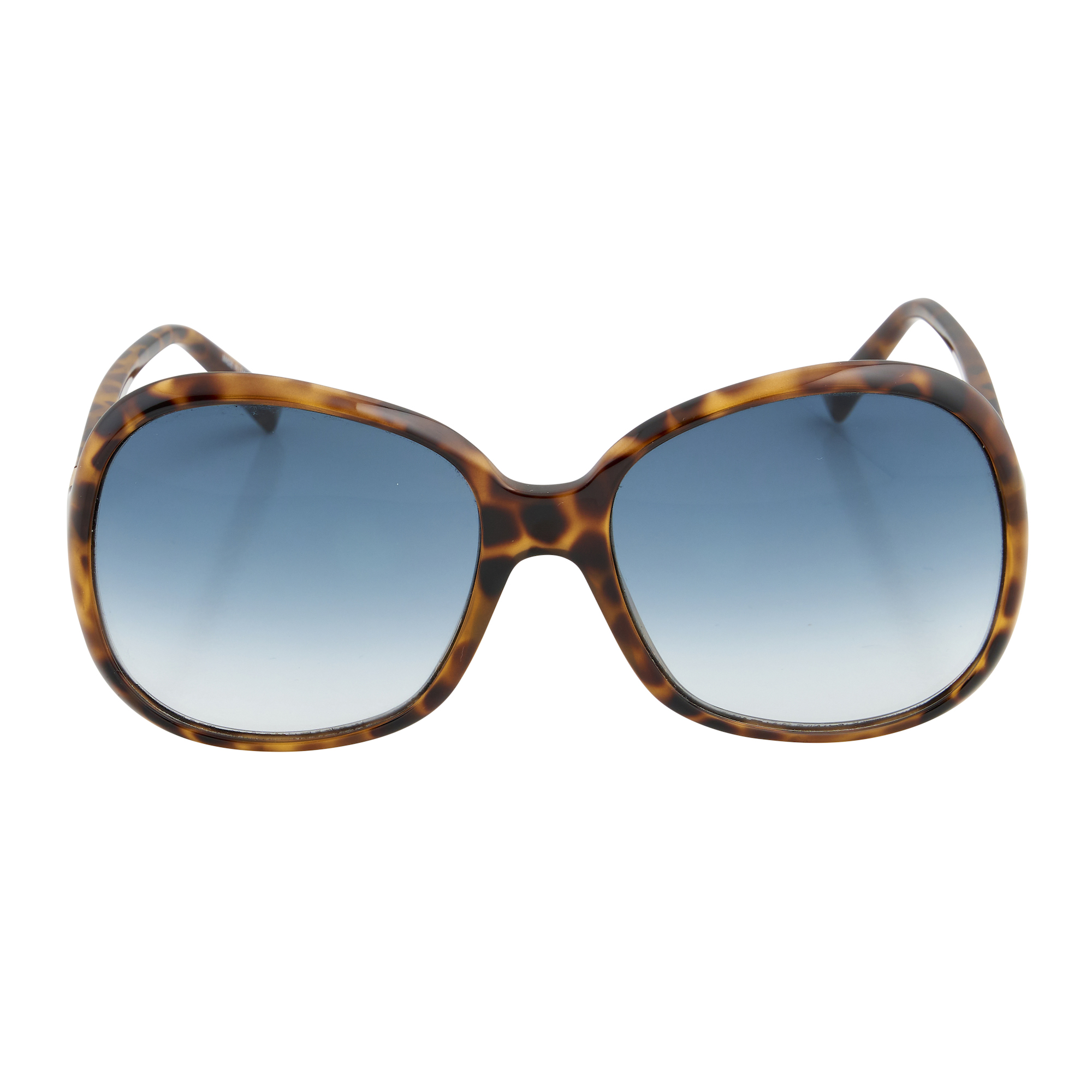 The oversized frames styled in tortoise composite with gradient lenses, featuring logo detail to temples in gold tone metal.