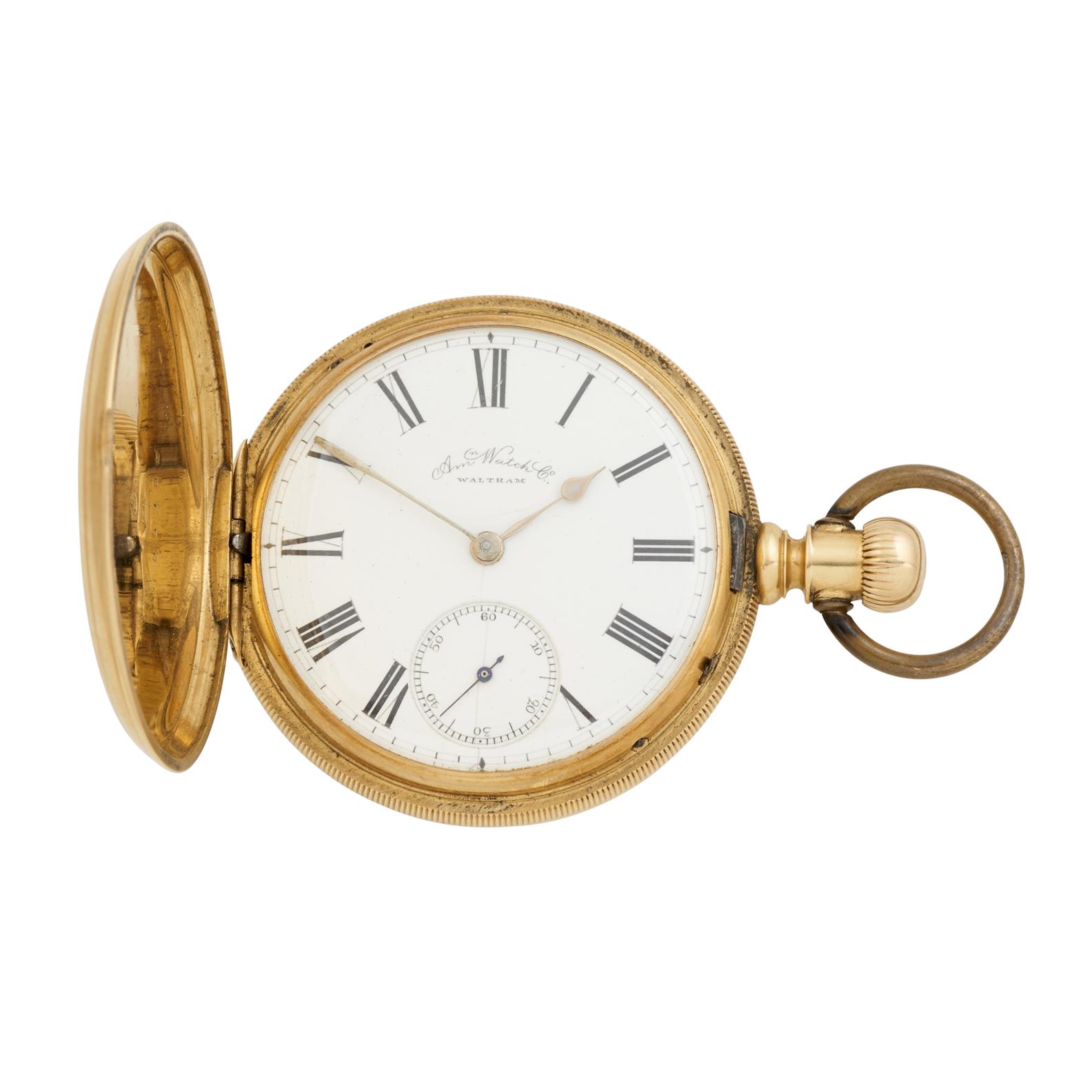 Movement: gilt 3/4 plate lever movement, lever set stamped Hillside, no. 3755213