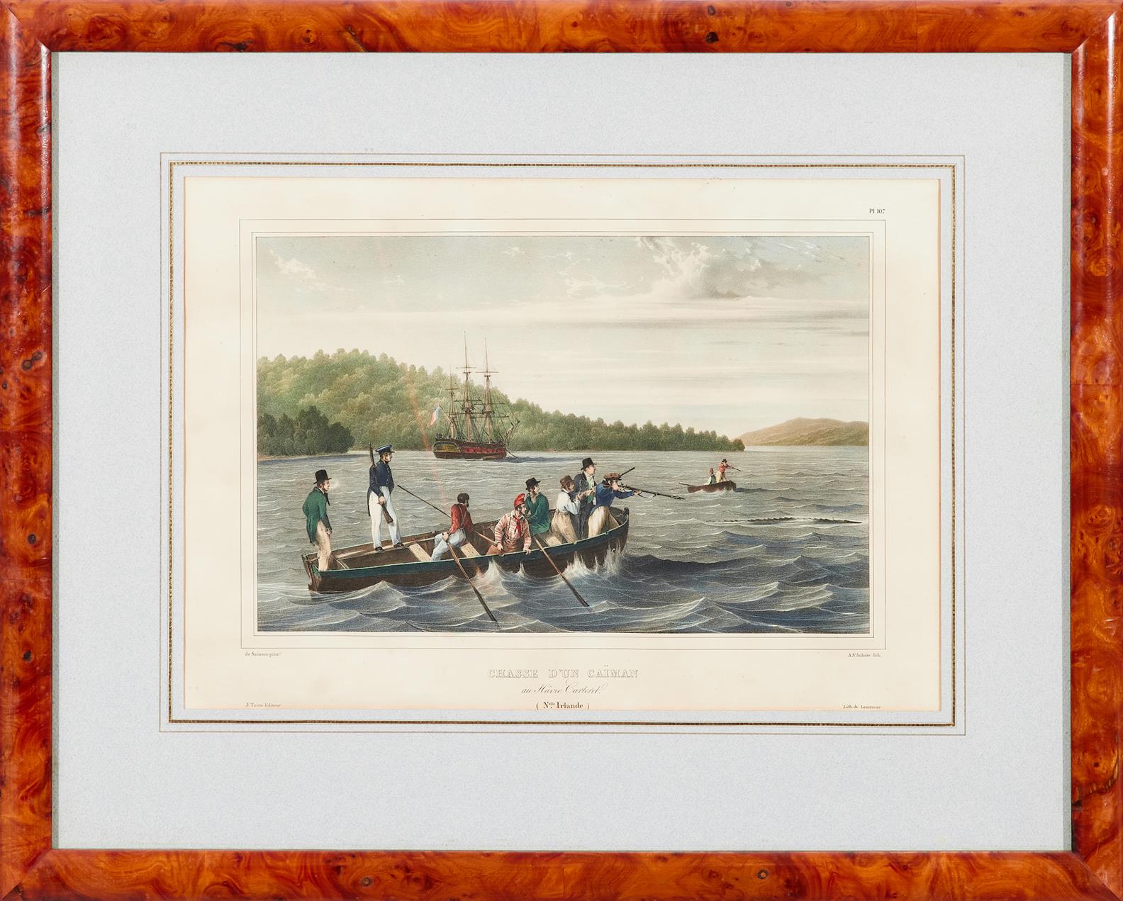 THREE FRENCH NAUTICAL AQUATINTS, TWO AFTER SAINSON, ONE OF THE ANTARCTIC, IN BIRDS-EYE MAPLE FRAMES