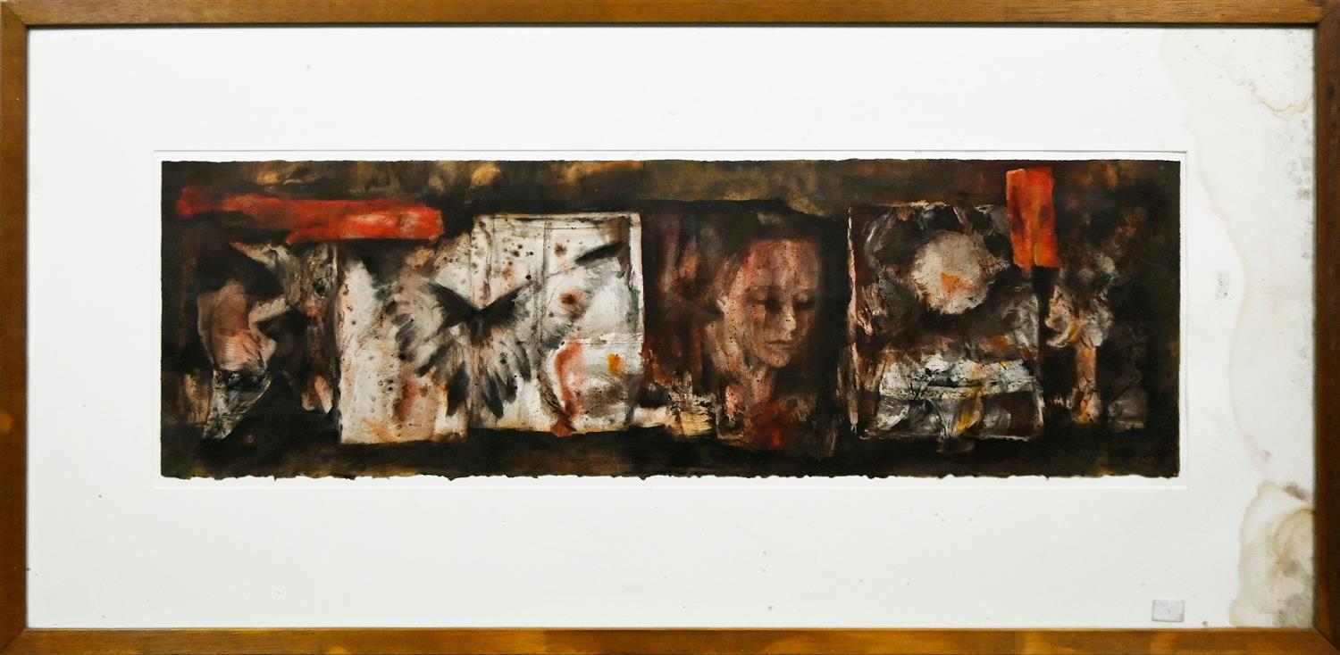 PAM HALLANDAL (1929-2018) Shopping Plaza 1991 charcoal, pastel and ink on paper 173 x 31.5cm