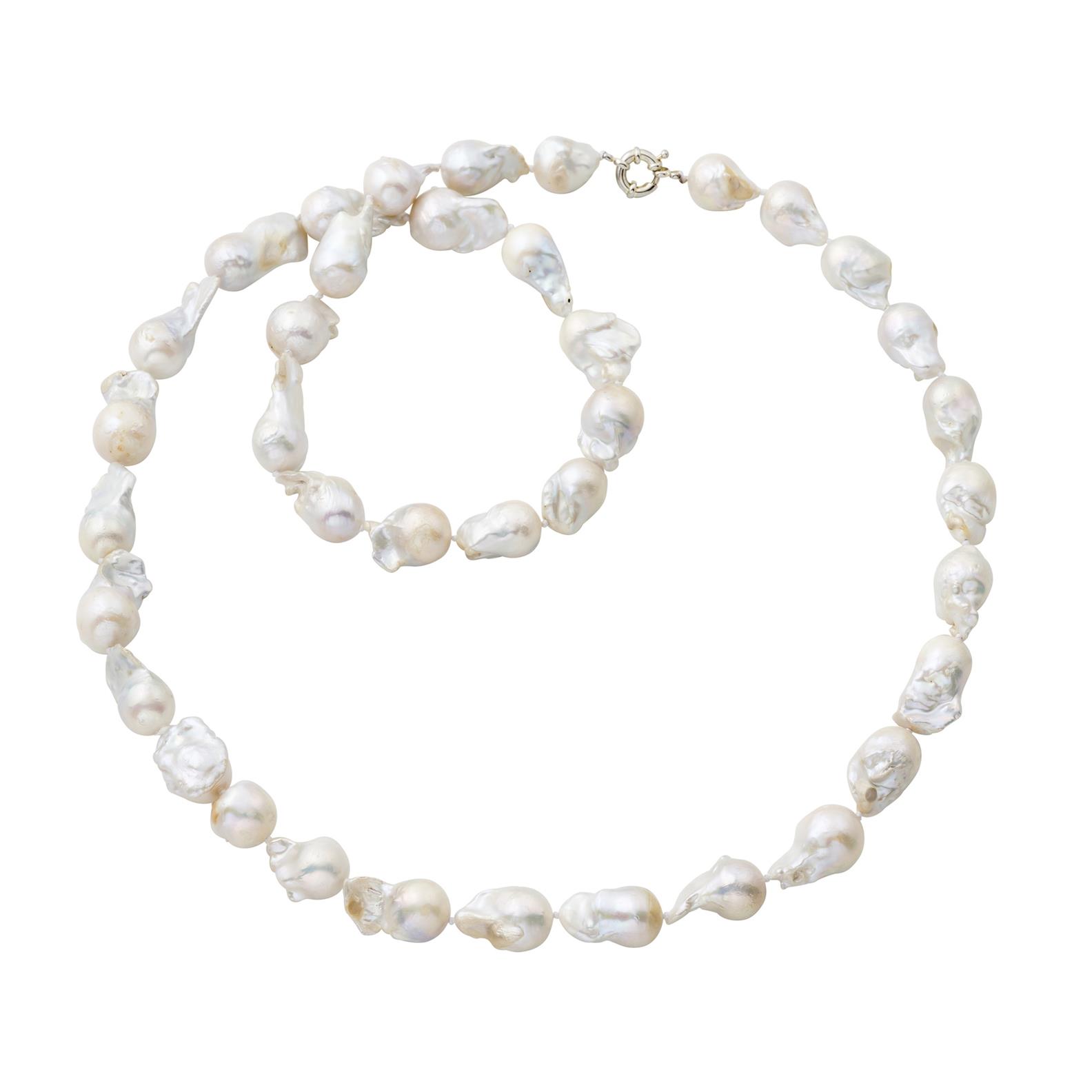 A STRAND OF BAROQUE PEARL TO A CLASP IN BASE METAL, EACH PEARL MEASURING APPROXIMATELY 26 X 15MM, 1050MM