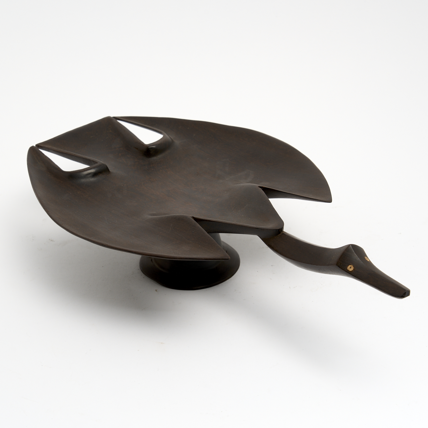 A NICELY CARVED FIGIAN HARDWOOD BIRD-FORM DISH L.46.5CM Provenance: Collection of Bob Lyon, receiver of the highest civilian award in Fiji, Samoa, and Papua New Guinea