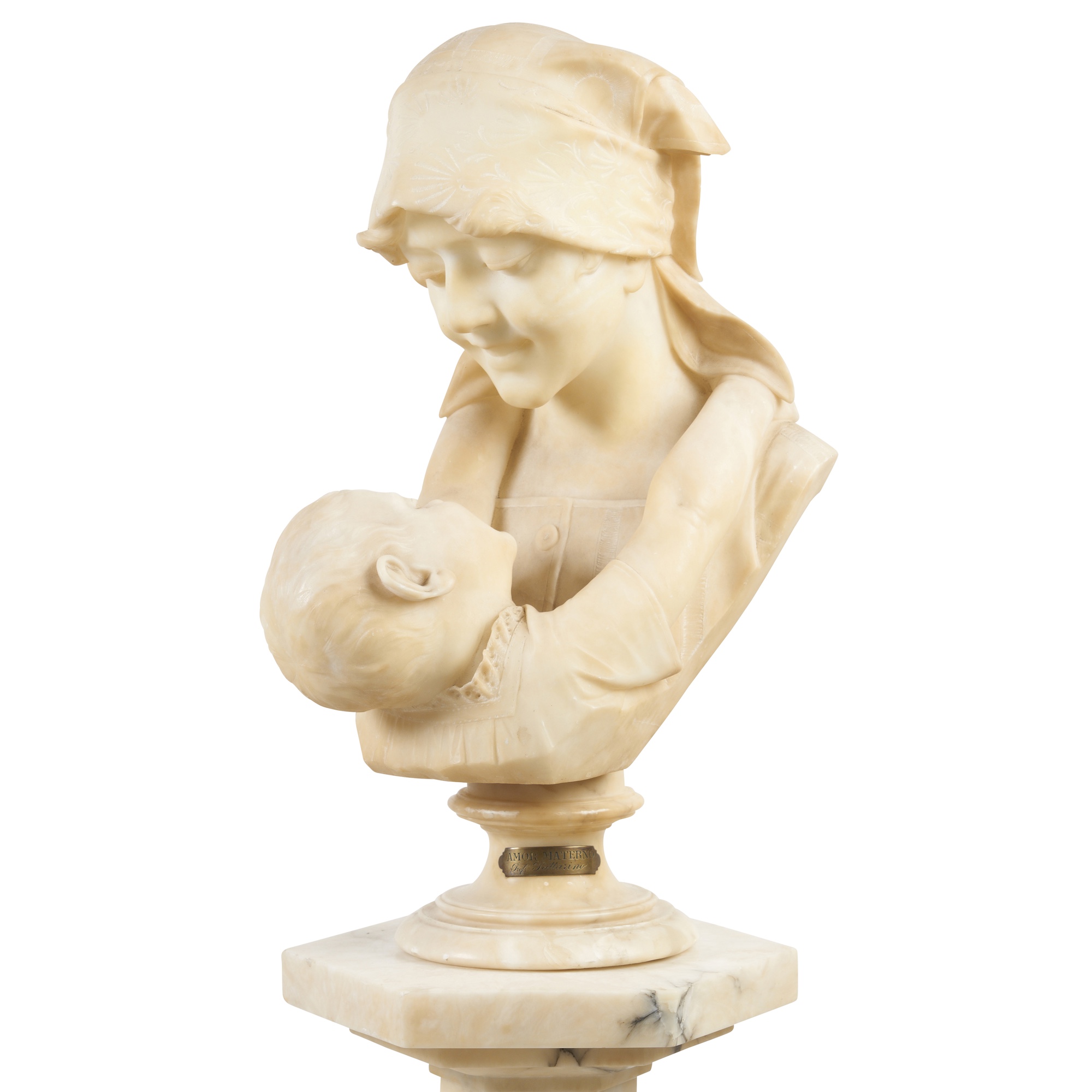 Mounted on a hexagonal marble pedestal of the same period, possibly original to the sculpture