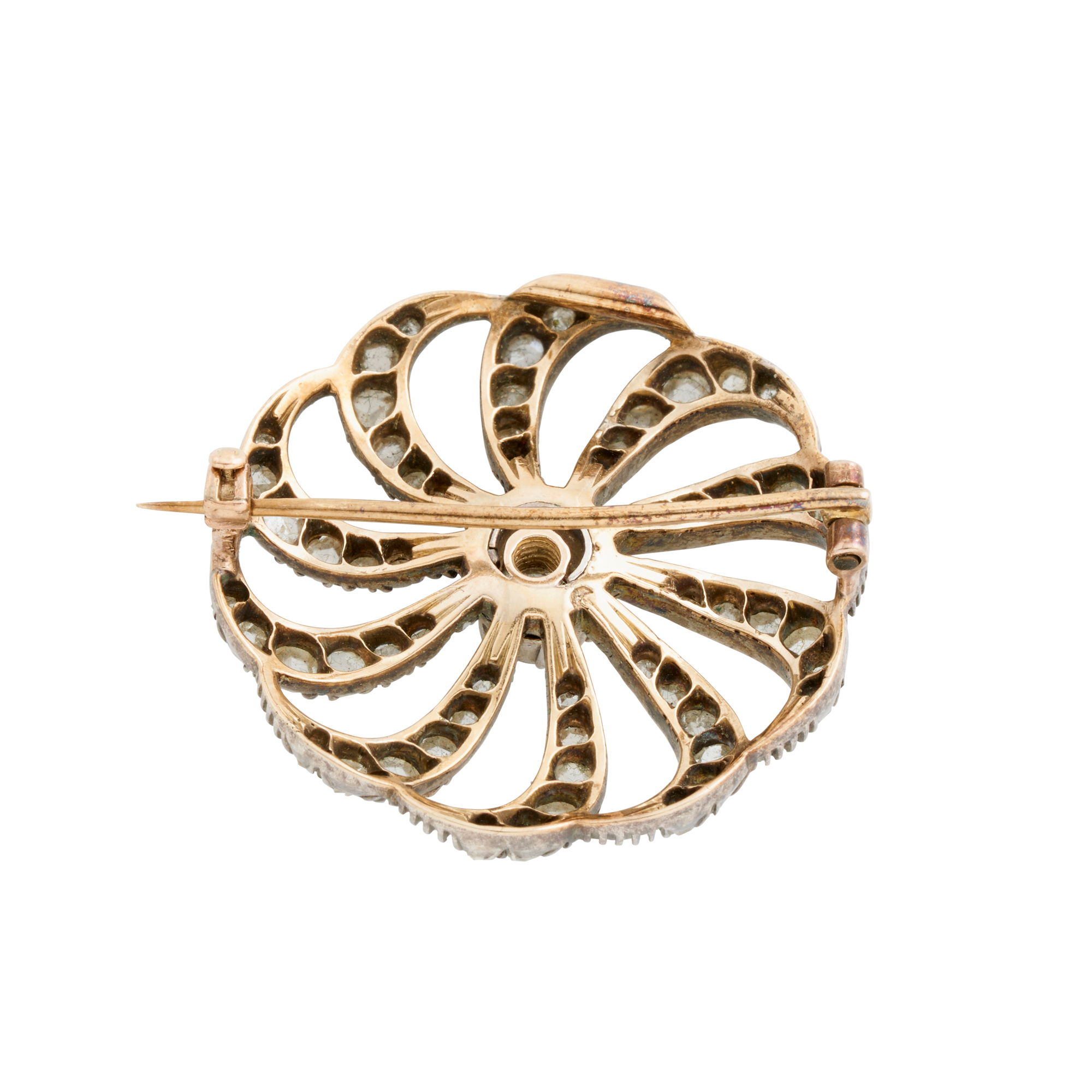 SILVER, 9CT GOLD AND DIAMOND PINWHEEL BROOCH, CIRCA 1910
