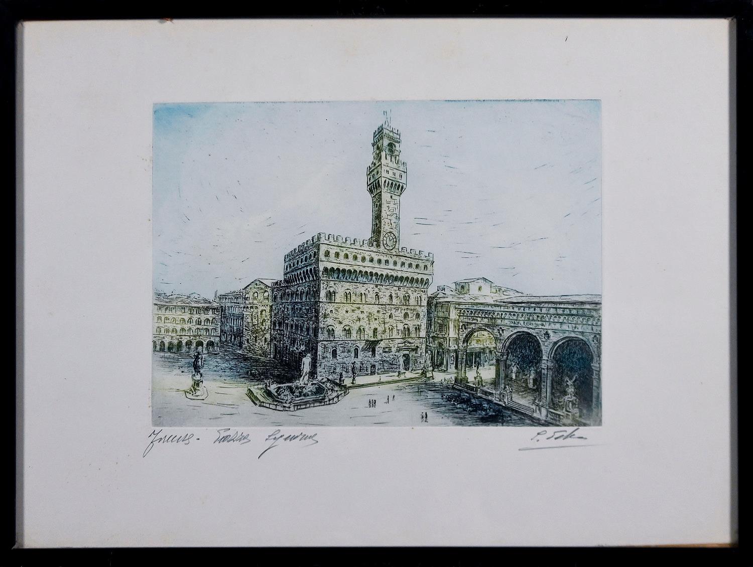 ARTIST UNKNOWN (SIGNED INDECIPHERABLY), A SET OF THREE ITALIAN HAND COLOURED ETCHINGS,