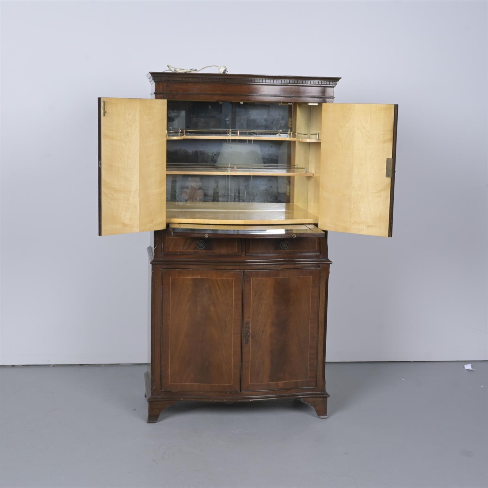 A FIGURED MAHOGANY DRINKS CABINET IN GEORGE III MANNER (155H X 83W X 45D CM)