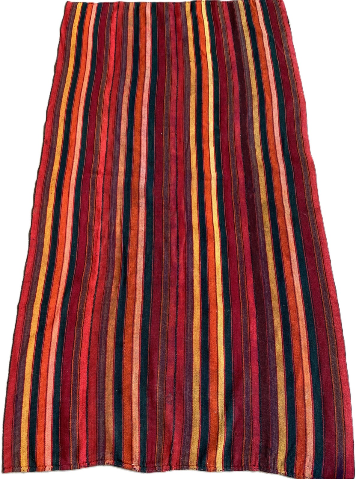 100% WOOL. TRIBAL DESIGN IN VARYING SHADES OF RED, BLUE & SAFFRON. JAJIMS ARE FLATWEAVES USED AS CARPETS, CURTAINS, BED & FURNITURE COVERS.