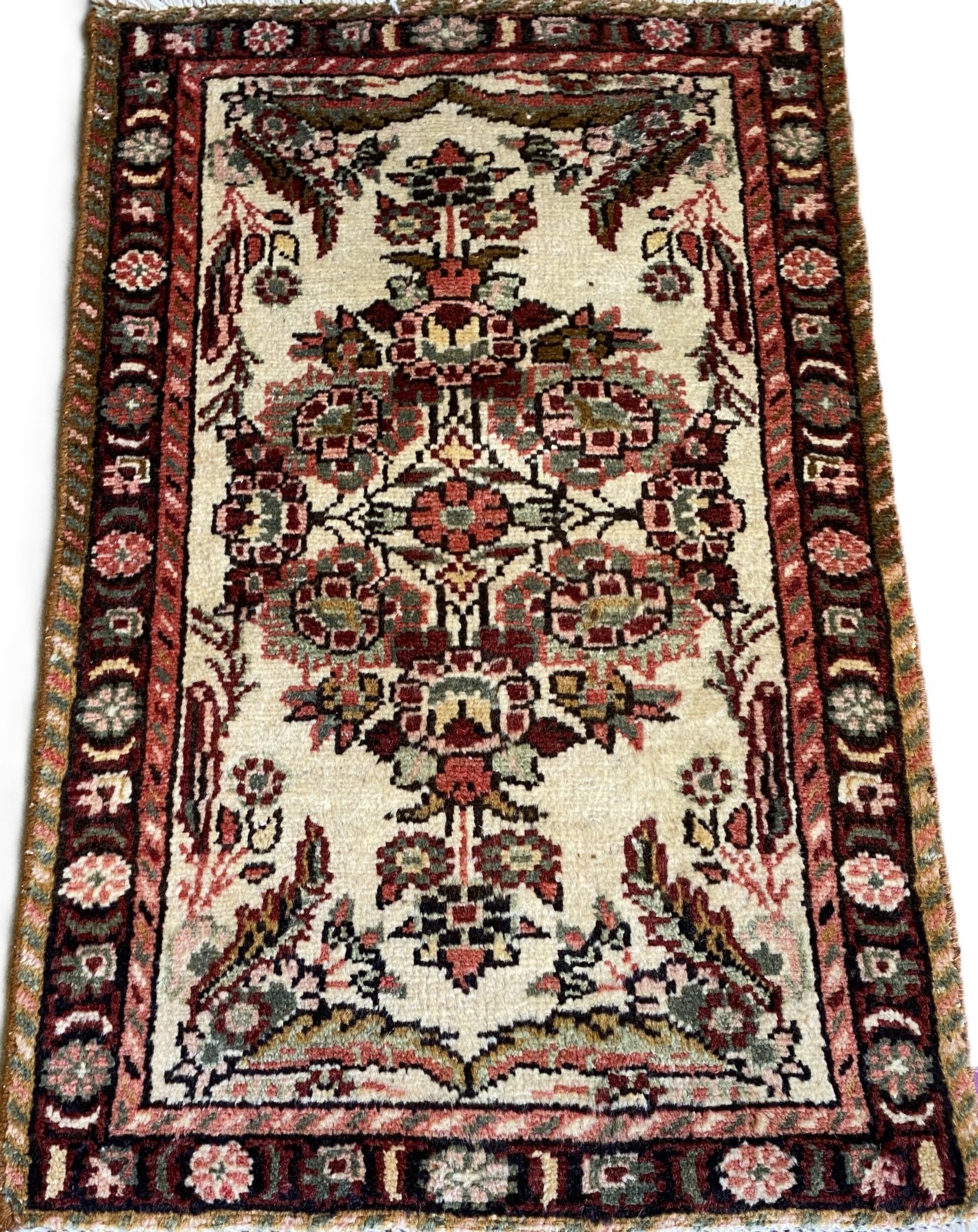A PERSIAN WOOLLEN MEHRABAN SCATTER RUG (100 X 60 CM)