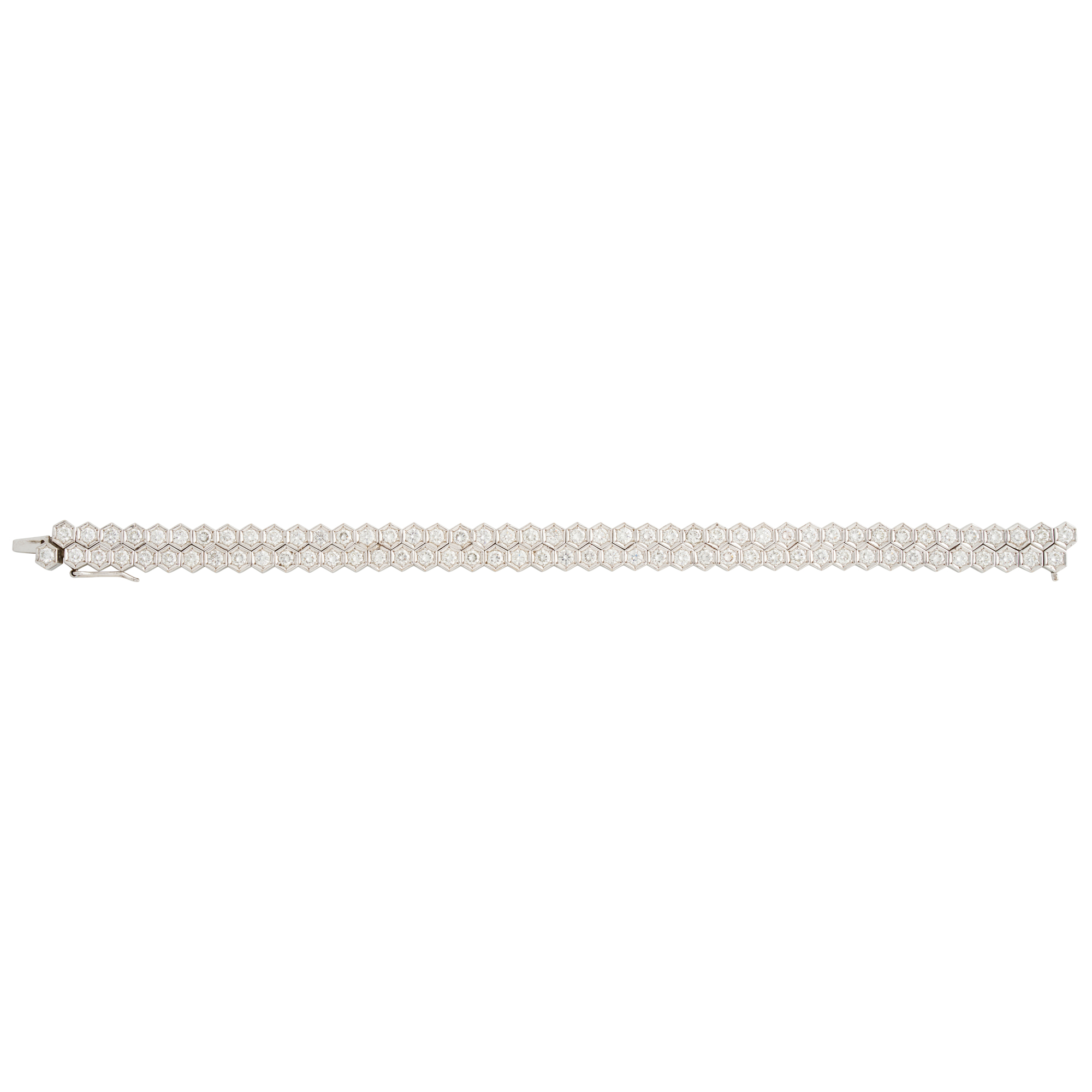 Designed as a double row of claw-set round brilliant-cut diamonds within honeycomb settings, together weighing approximately 7.00 carats, length 170mm, gross weight approximately 25.5 grams.