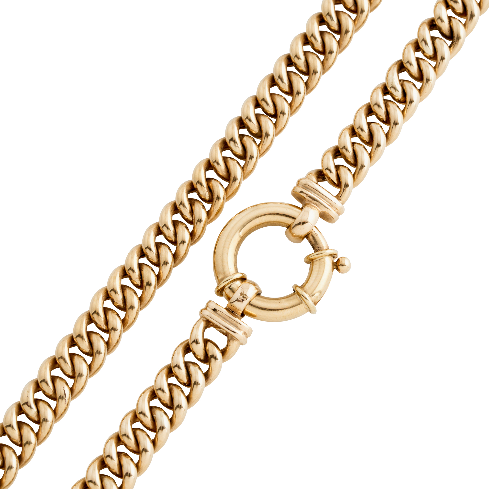 Modelled as a curblink chain, completed by a feature bolt ring clasp, length 600mm, gross weight approximately 57.2 grams.