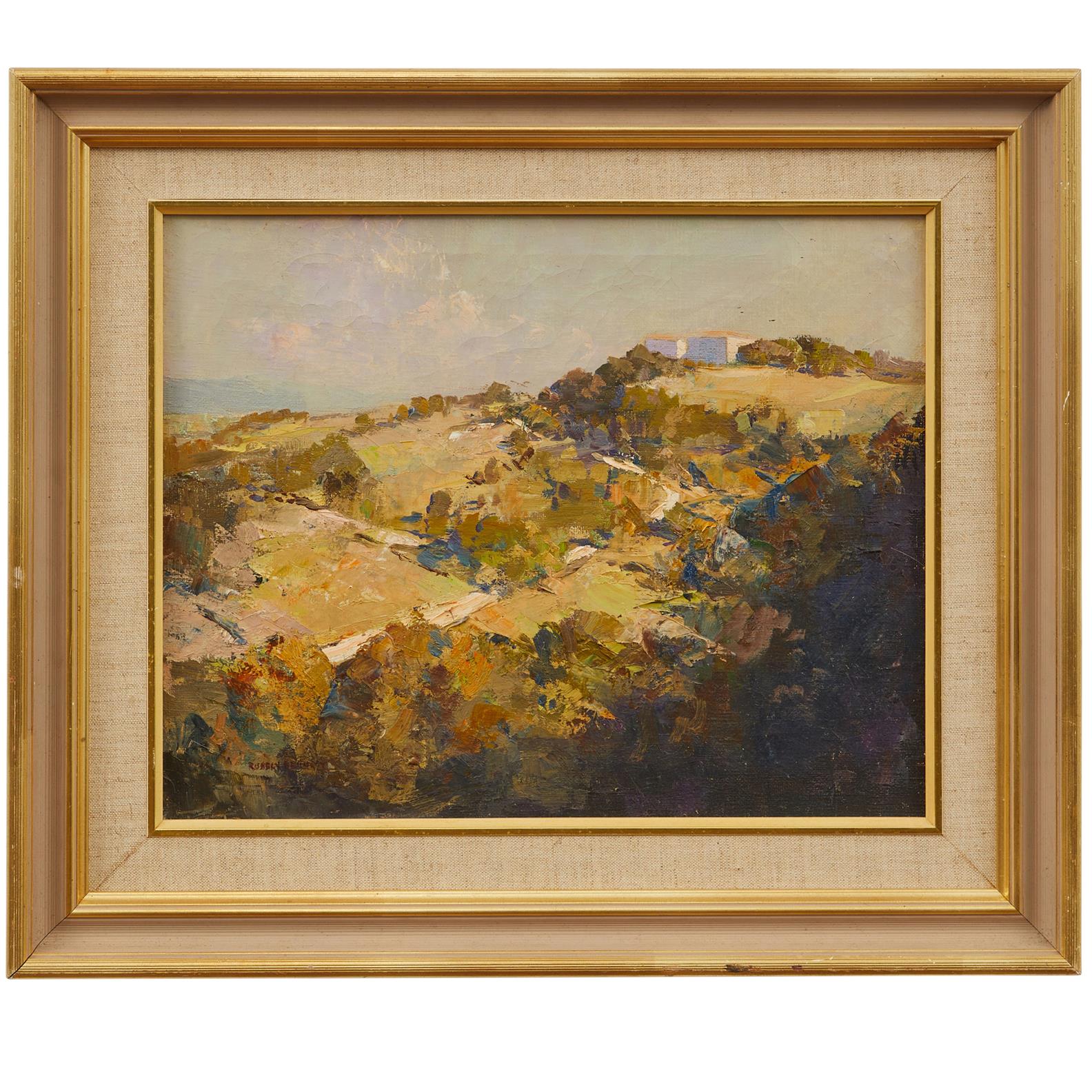 Surface dirt, overall craquelure particularly prevalent in the sky with some spiral cracking to upper left quadrant.