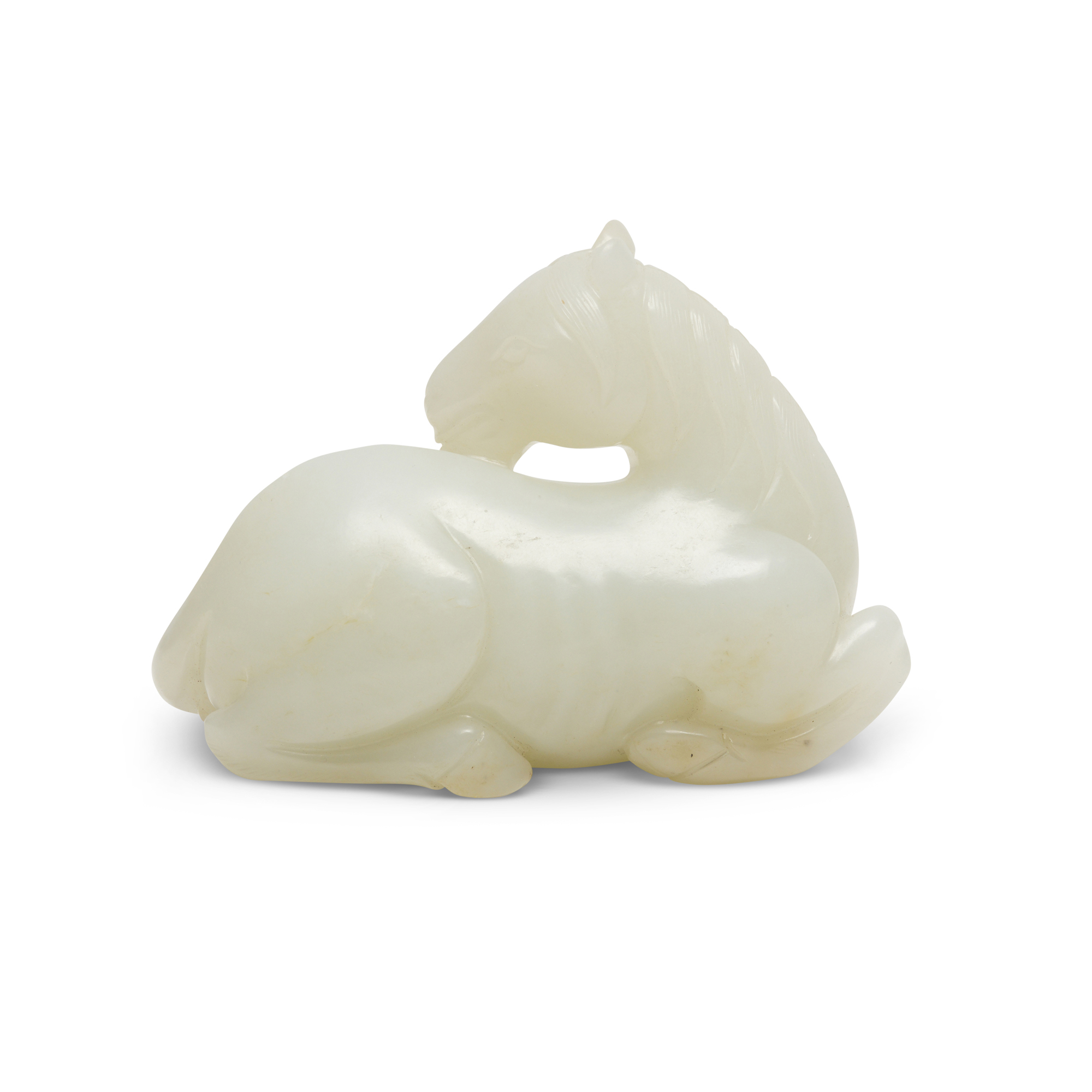 A CHINESE WHITE JADE HORSE, QING DYNASTY, QIANLONG PERIOD (1736 - 1795)