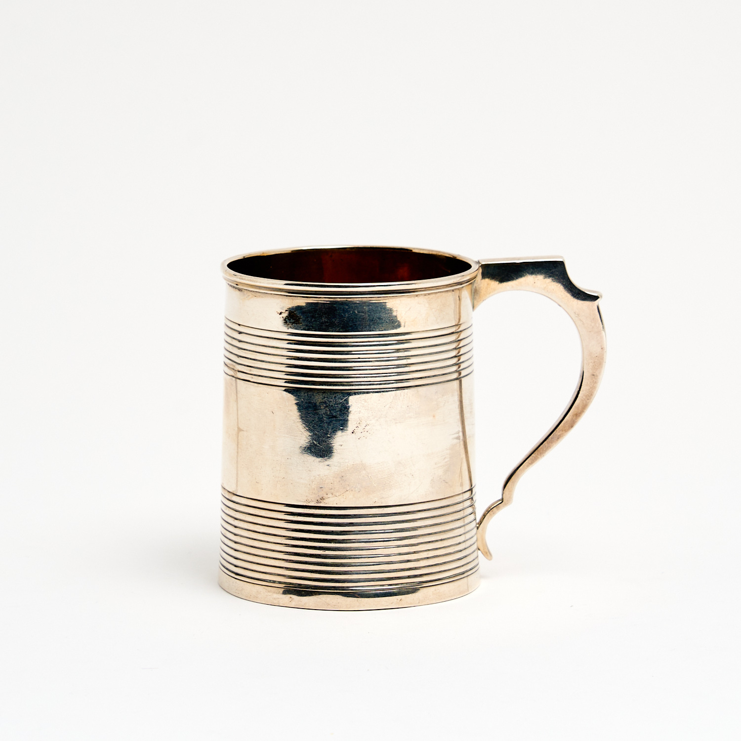 A GEORGIAN STERLING SILVER MUG WITH A GILT WASHED INTERIOR 132G H.8.5CM