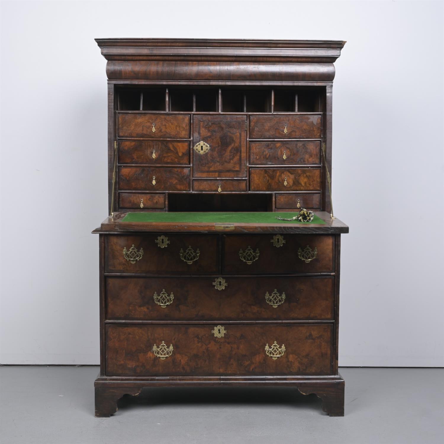 A GEORGE I FIGURED WALNUT ESCRITOIRE, 1710s (A/F) (159CM H X 107CM W X 49CM D)