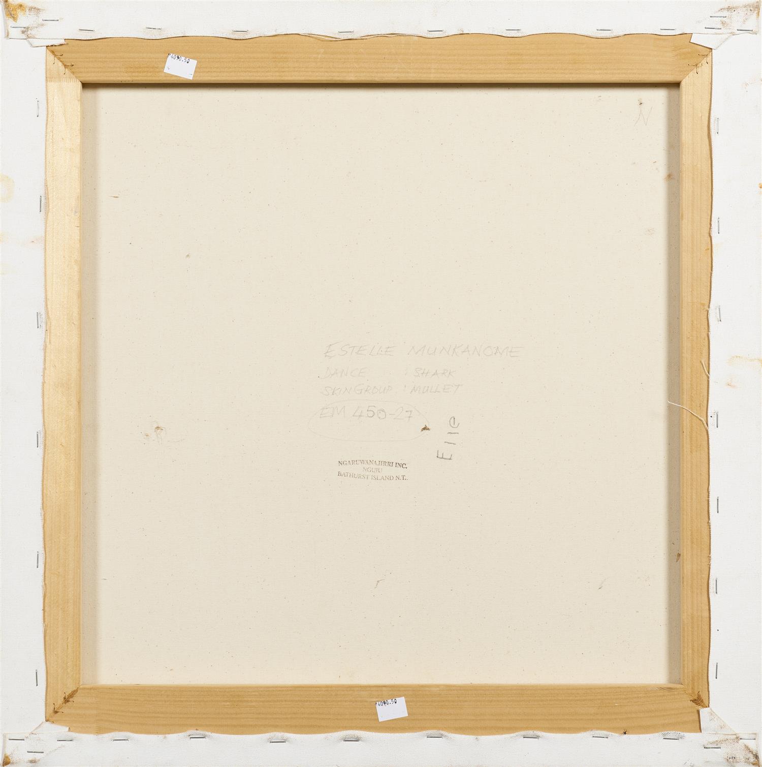 inscribed verso with artist's name, and Ngaruwanajirri Art Centre cat. no. EM450-27