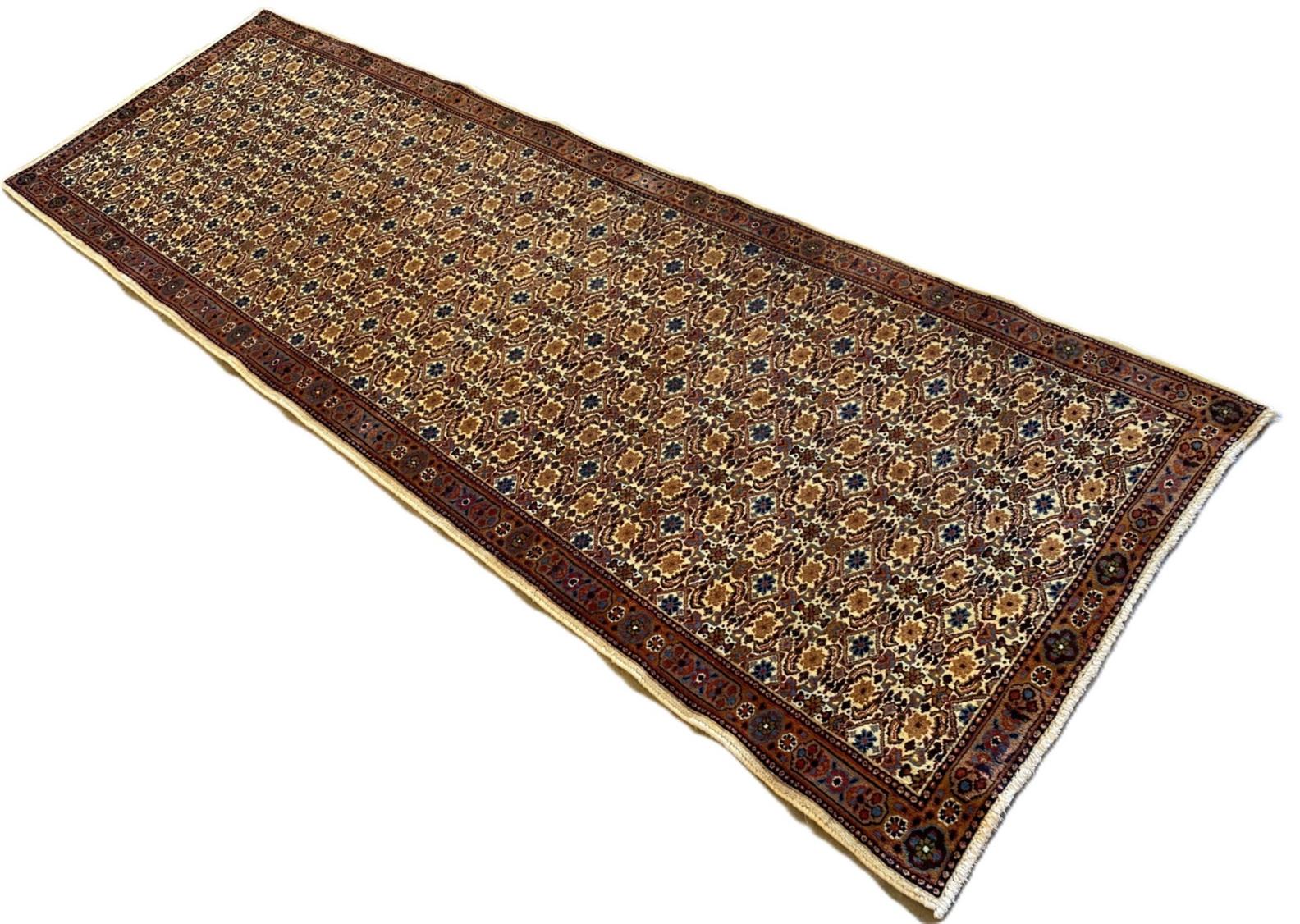AN INTRICATE PLUSH PILE PERSIAN MOOD RUNNER (260 X 93 CM)