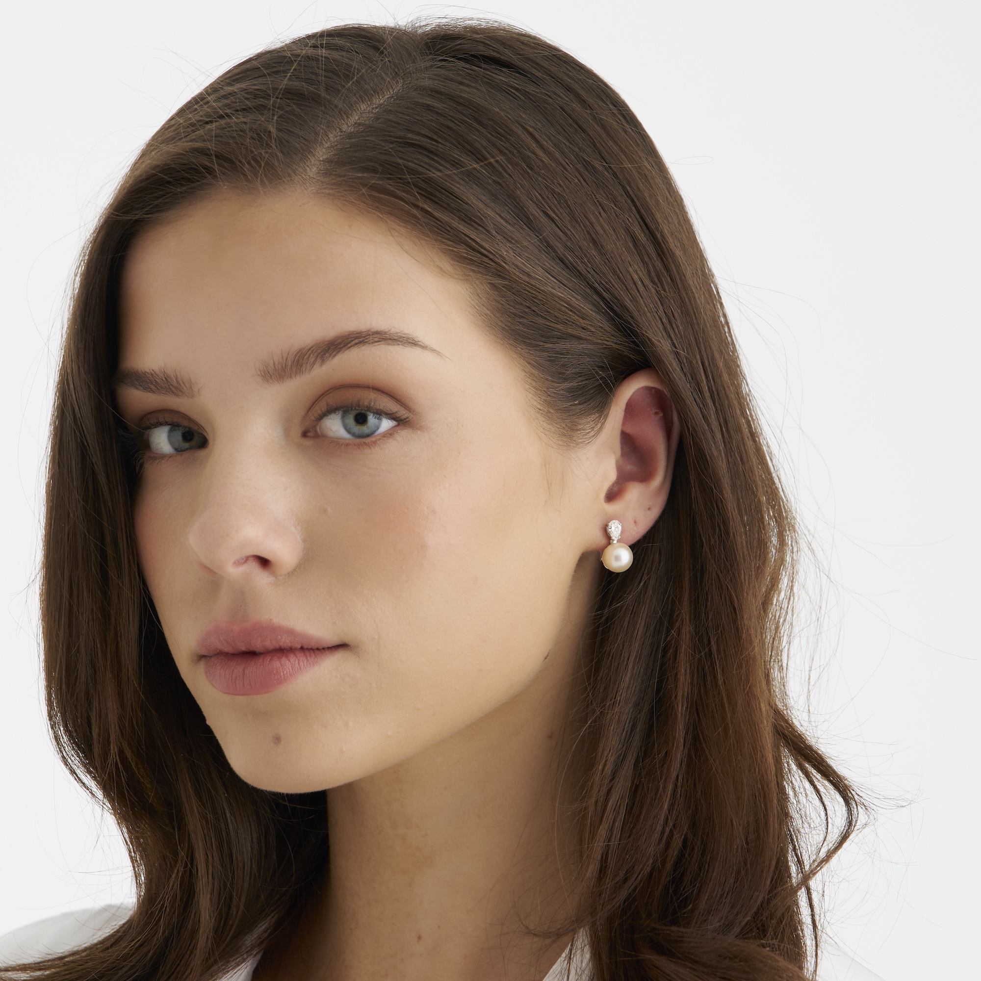 Pearls of a crema hue with high lustre, minimal imperfections to skins.