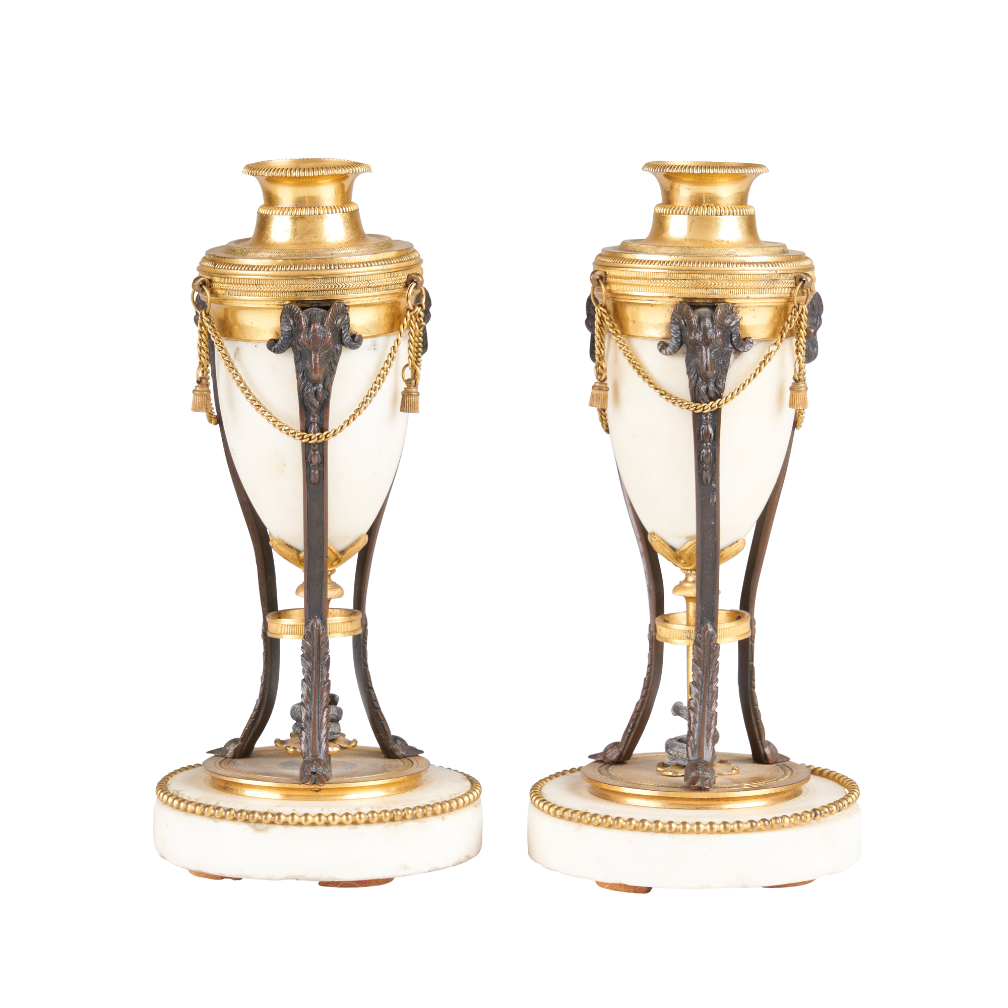A PAIR OF LOUIS XVI MARBLE AND ORMOLU CASSOLETTES