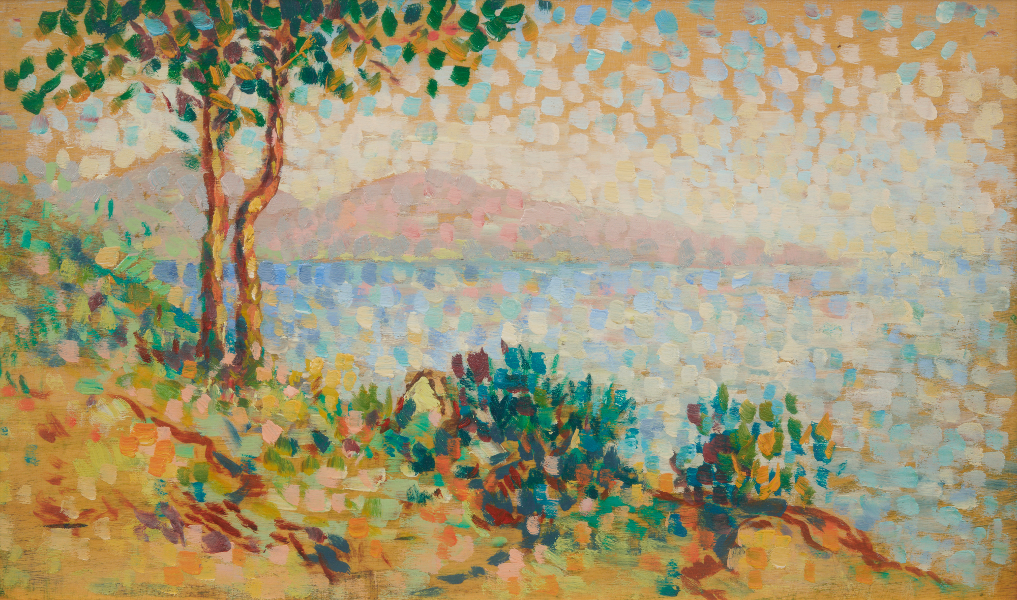 Paul SIGNAC (1863–1935) The corvette lEtourdie and another vessel off Les Adrets-de-lEstérel Black crayon and watercolour 21 x 27cm