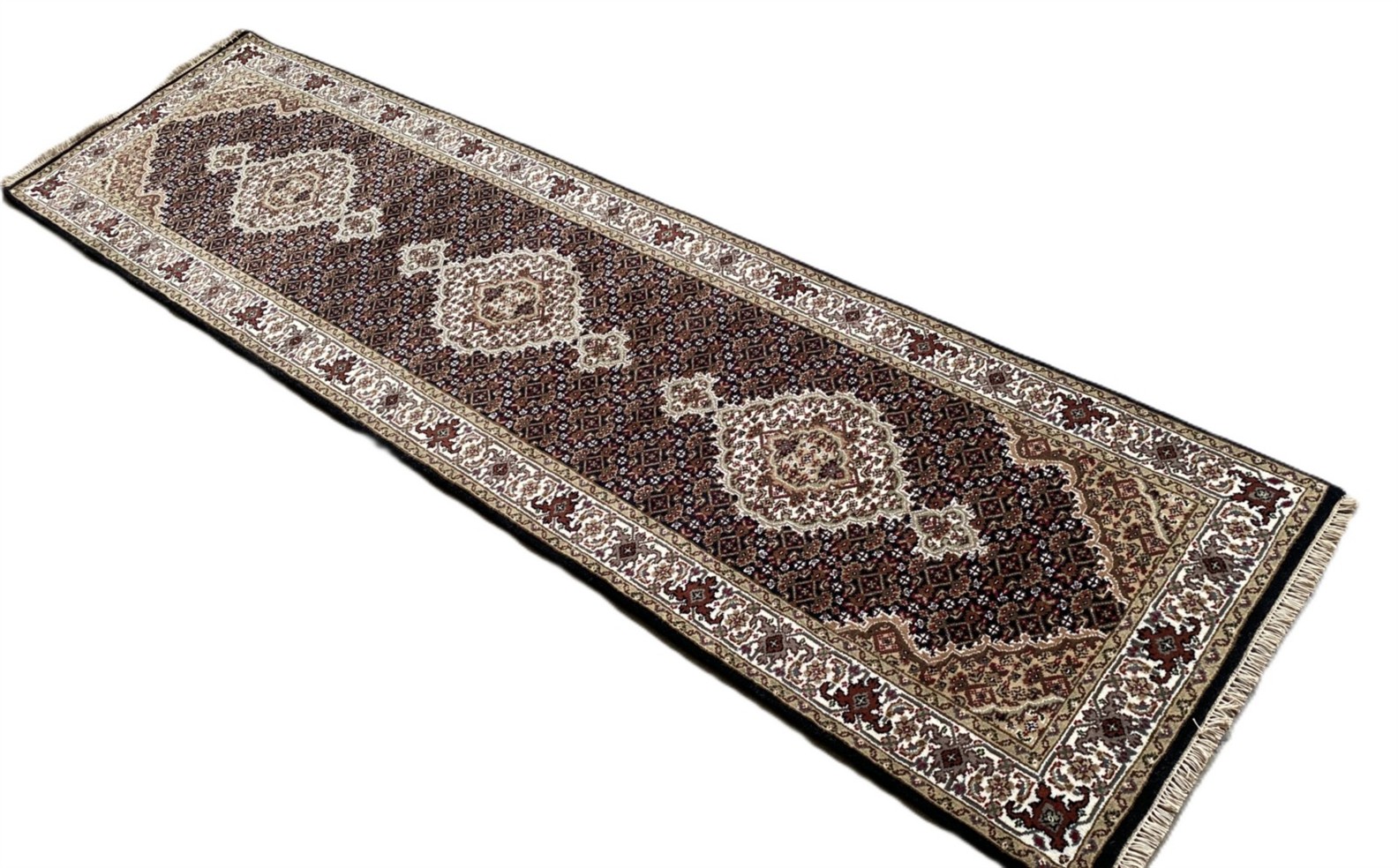 A NEW SILK & WOOL TABRIZ MAHI RUNNER (300 X 83CM)